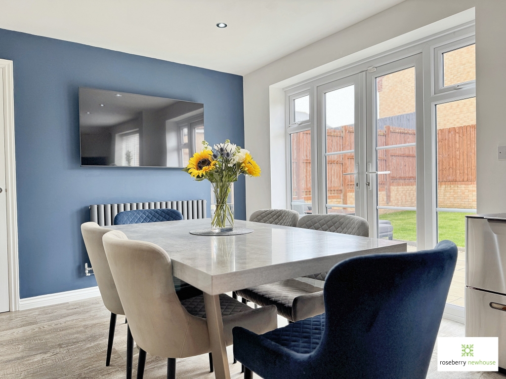 Set within the sought-after village of Stainton, this beautifully presented detached family home occupies a prime position on the popular Rose Cottage Development. Built by Taylor Wimpey, the property combines contemporary style with practical family living, offering a superb opportunity for couples or growing families looking for their perfect next home. Finished in modern, neutral tones, the property benefits from an NHBC warranty, energy-efficient double glazing, gas central heating, and a strong B-rated energy performance certificate. The outdoor lifestyle is equally impressive – a four-car driveway leads to the integral garage, with additional visitor parking provided to the front of this exclusive row of five detached homes. To the rear, a thoughtfully landscaped south-westerly garden provides lawn and patio space – perfect for children to play safely or for hosting barbecues and evening gatherings. With a total floor area of approximately 1,410 sq. ft., this home is perfectly designed for modern family life. The ground floor offers a welcoming hallway with access to all main ground floor rooms and a convenient cloakroom/WC – perfect for guests. A generous, light-filled living room features a bay window overlooking the front garden. Ideal for family evenings or entertaining guests. The true heart of the home is the spacious open-plan kitchen and dining room with modern fitted units, integrated appliances, and French doors opening onto the garden. The perfect hub for family meals and gatherings. Adjacent to the kitchen lies a practical and well-sized utility room, with rear access to the garden and space for laundry appliances. To the first floor a central and spacious landing offers access to the loft and all four bedrooms. Firstly, a superb principal bedroom suite lies at the front of the property with fitted wardrobes, large window, and access to a private en-suite shower room. Bedroom 2 is another generously sized double bedroom with its own en-suite shower room, perfect for teenagers or guests. Bedroom 3 a well-proportioned and versatile room– ideal as a child’s room, guest room, or study. Bedroom 4 is a comfortable single or small double room with rear garden views – perfect as a nursery, child’s bedroom, or home office. Serving bedrooms 3 and 4 and completing the first floor is a stylishly bathroom fitted with bath, WC, and hand basin. The outdoor space provides a large driveway for up to four vehicles, leading to the integral garage, ideal for secure parking or additional storage. The rear garden with its enviable south-westerly aspect has a lawn and patio – safe for children and perfect for outdoor entertaining. Early viewing is highly recommended – this home offers the perfect balance of space, style, and practicality for growing families.
