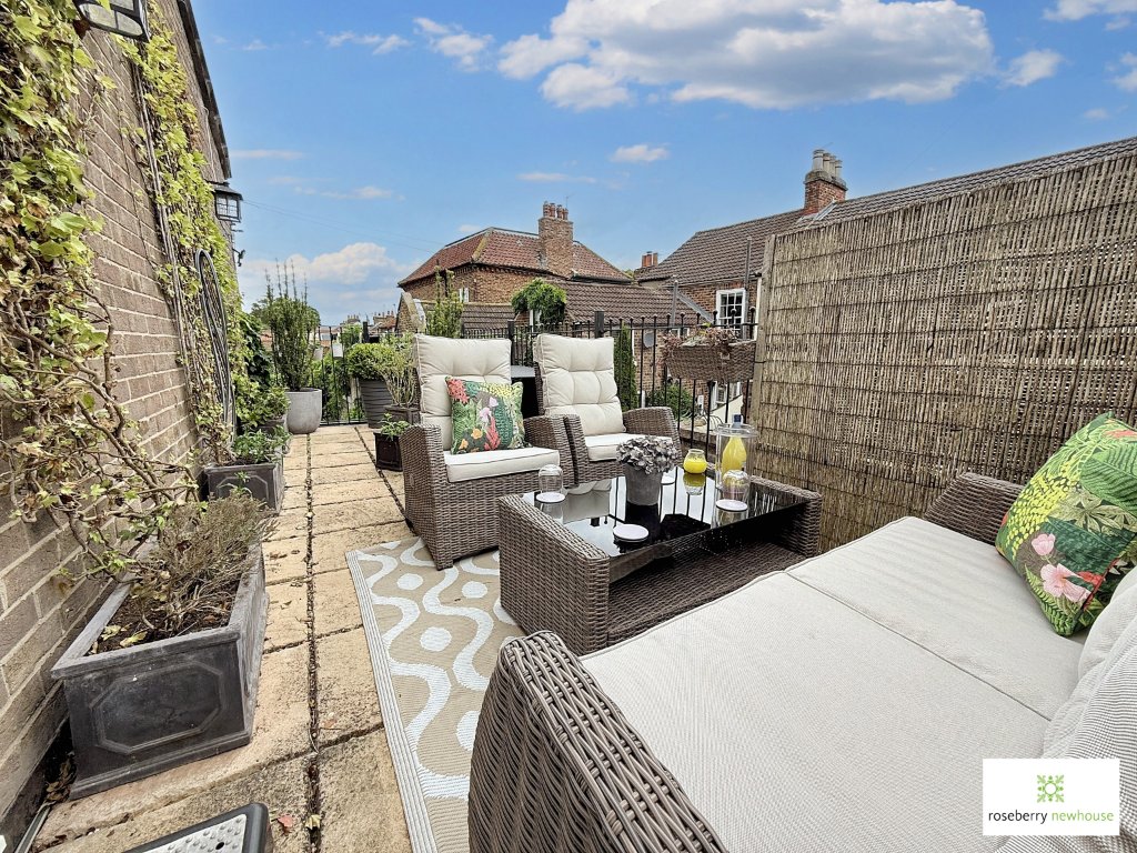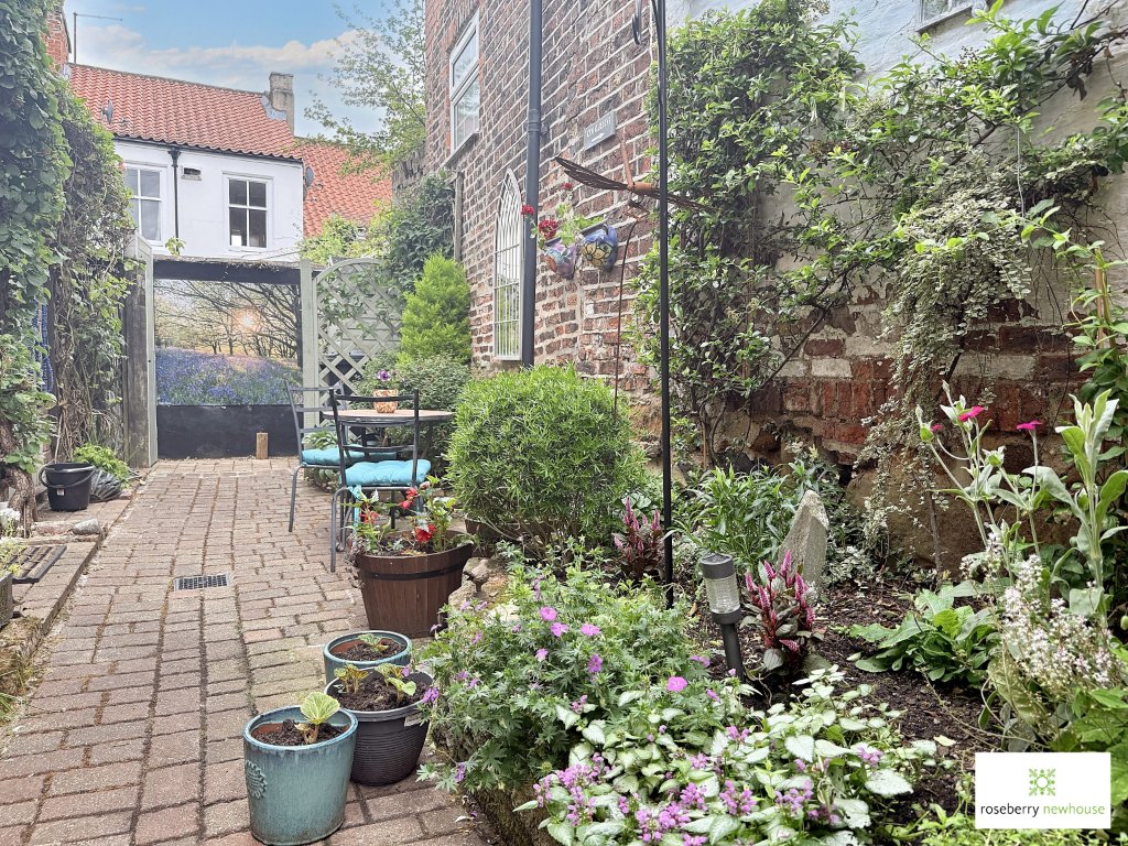 To the rear, the south-facing courtyard garden offers a further private space for alfresco dining, all set within a quiet and established setting. Access to the property is via a charming archway and cobbled pathway, enhancing the sense of tucked-away tranquillity.