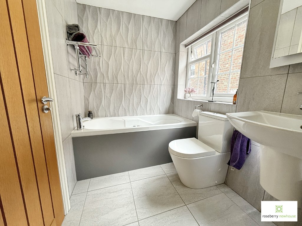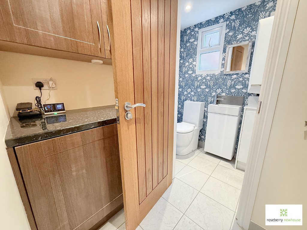 Thoughtfully remodelled in recent years, the interior offers a light and modern living environment. The welcoming entrance hall leads to a cosy yet elegant living room with panelling, while the stylish kitchen breakfast room features sleek cabinetry, integrated appliances and a practical dining area. A versatile study/snug provides an ideal work-from-home space or reading retreat, and there is also a modern cloakroom to the ground floor and laundry area.