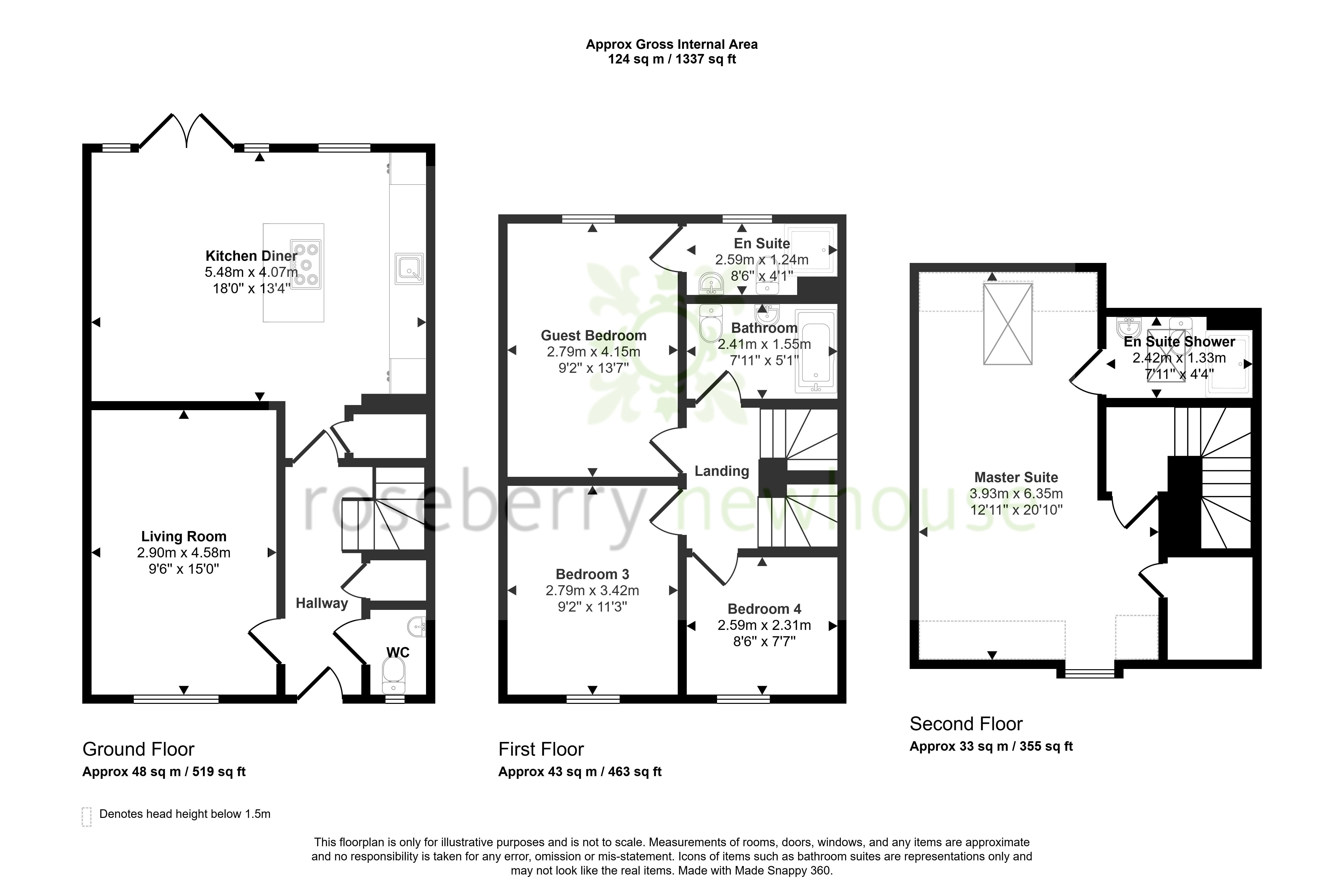 - Semi detached townhouse Four bedrooms Living room Open plan kitchen diner with Island unit Master bedroom with en suite Guest bedroom with en suite Off street parking Front and rear gardens High s...