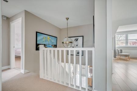 Landing - () - Shelved storage cupboard, access to roof space.