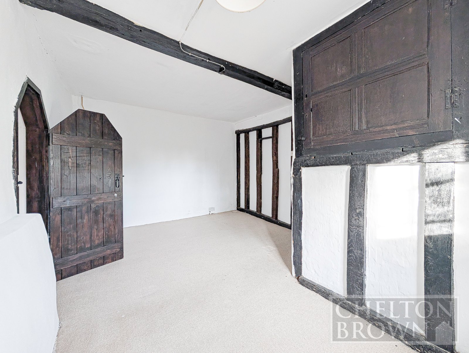 Stepping inside, you are welcomed into the first of two reception rooms, a warm and inviting space featuring French doors opening directly onto the garden, along with a beautiful inglenook fireplace, now enhanced by a feature log burner. From here, an internal hallway reveals one of the home's most striking features a stunning Tudor staircase, where centuries of craftsmanship and history are embedded into every timber.