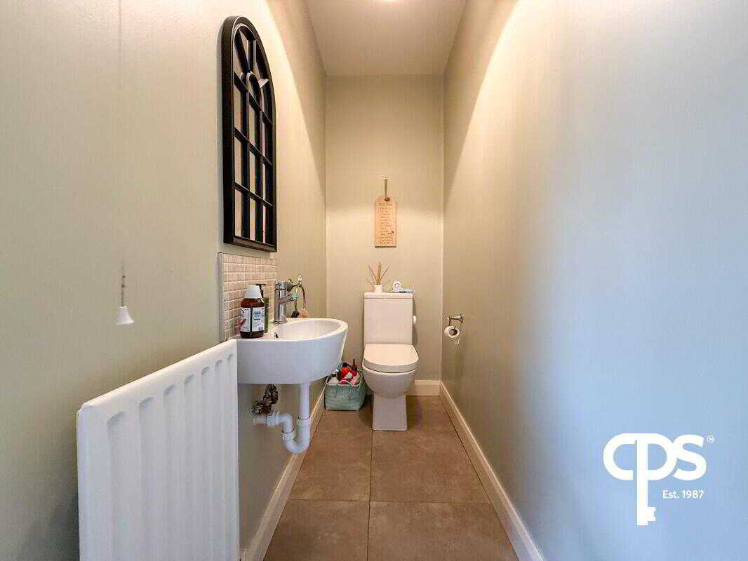Accessible from the kitchen, this area features matching tiled flooring, storage units, stainless steel sink, and plumbing for a washing machine and tumble dryer.Downstairs W/C – 2.25m x 0.94m