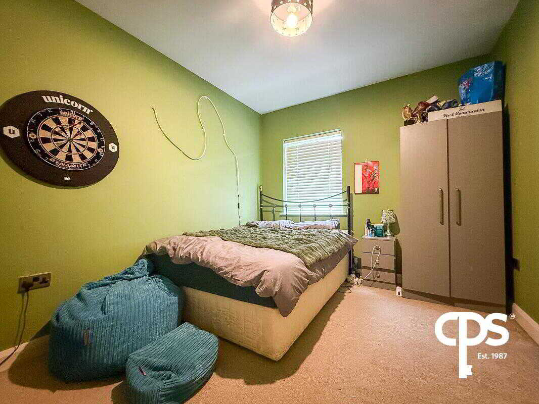 Currently used as a single bedroom, this room features carpeted flooring and a large sliding door wardrobe. Ideal for a child’s bedroom, home office, or guest room, with plenty of space for a bed, desk, and storage furniture.Bedroom 3 – 3.83m x 2.93m