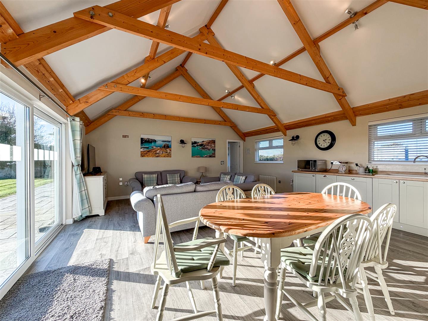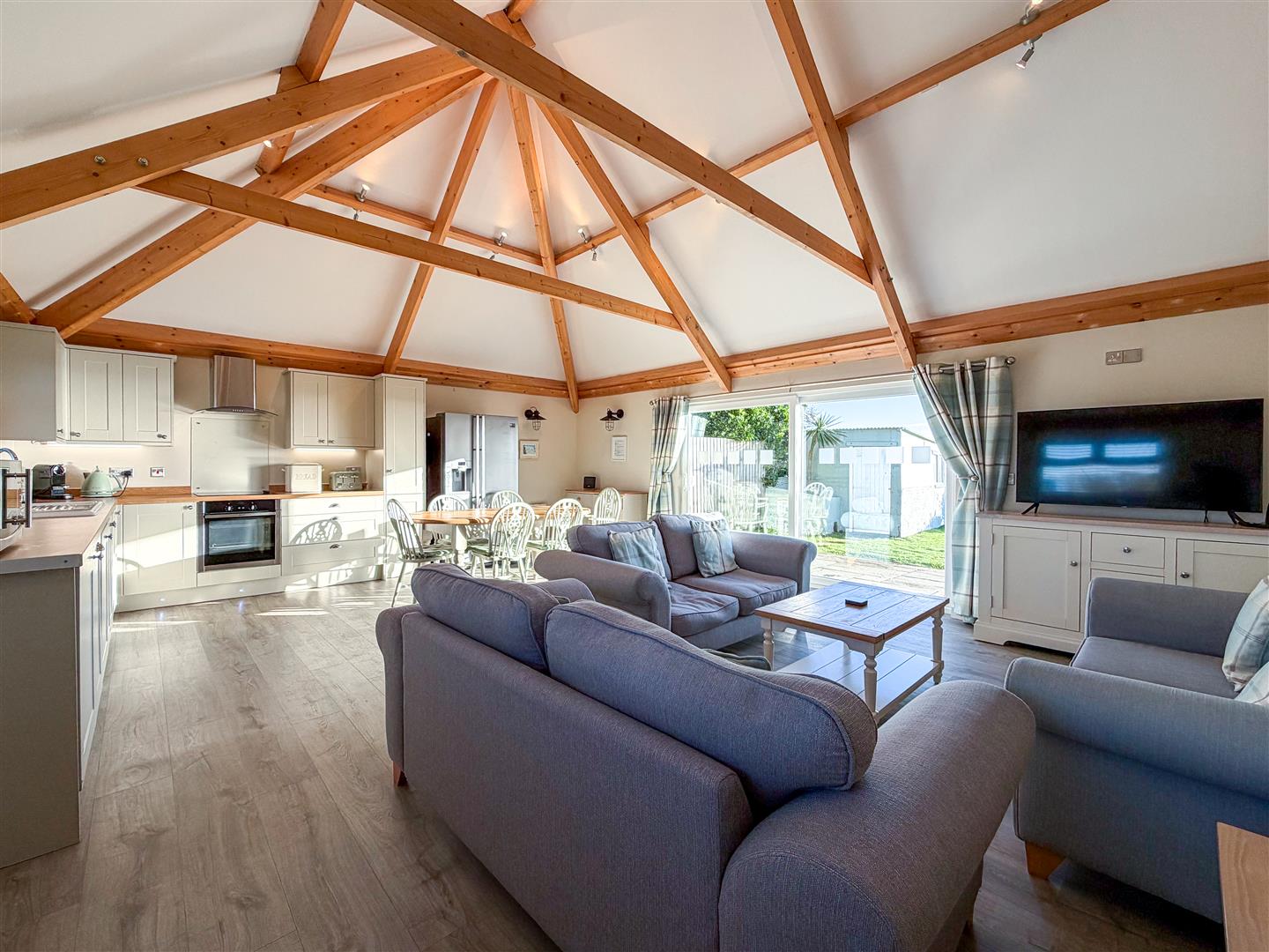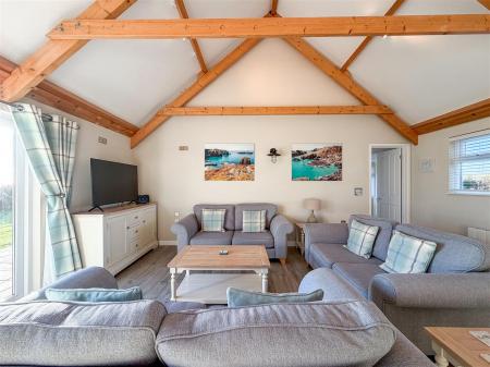 - OPEN PLAN LIVING SPACE WITH EXPOSED TRUSSES AND BEAMS
