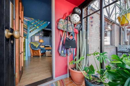 Entrance Porch - () - Solid wood exterior door with glass outlook. Tiled wood effect flooring.