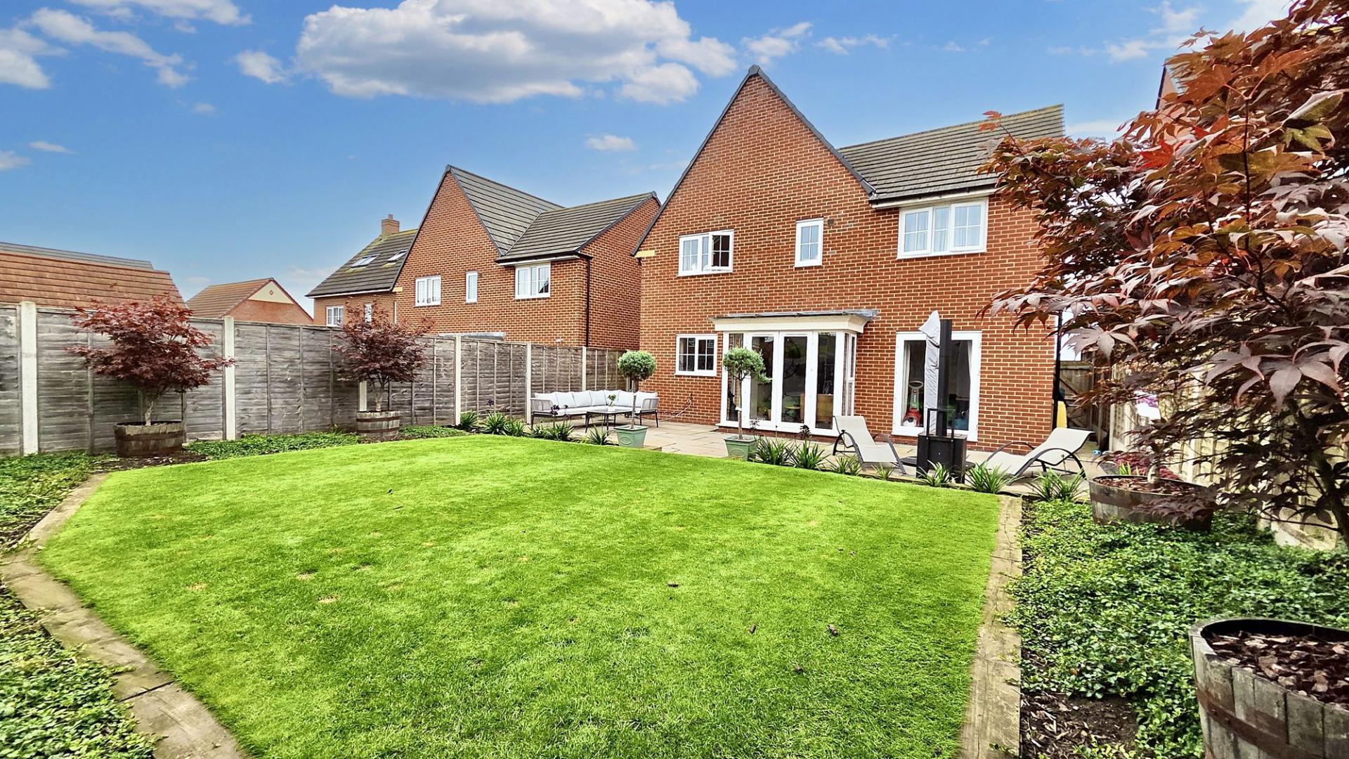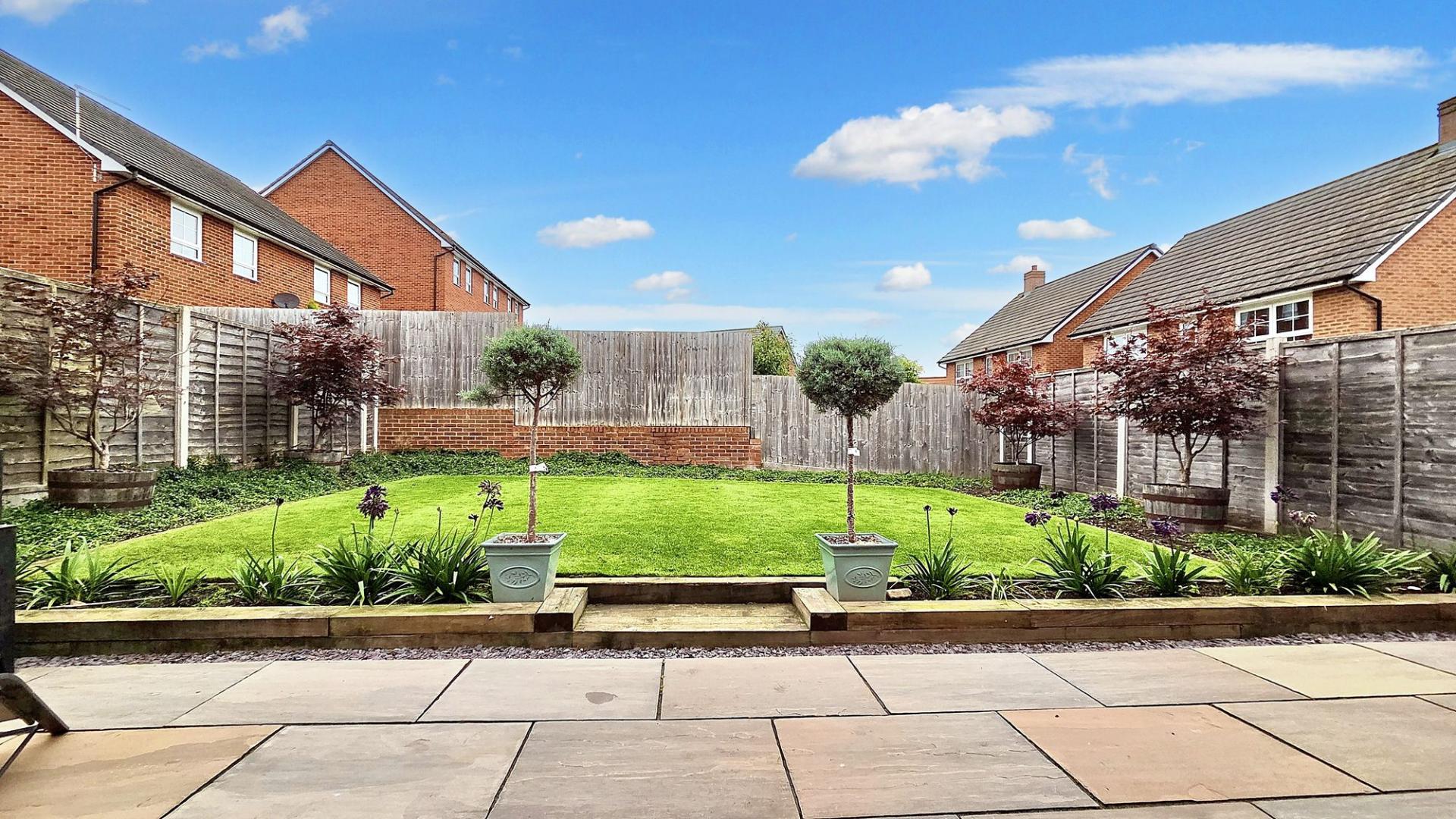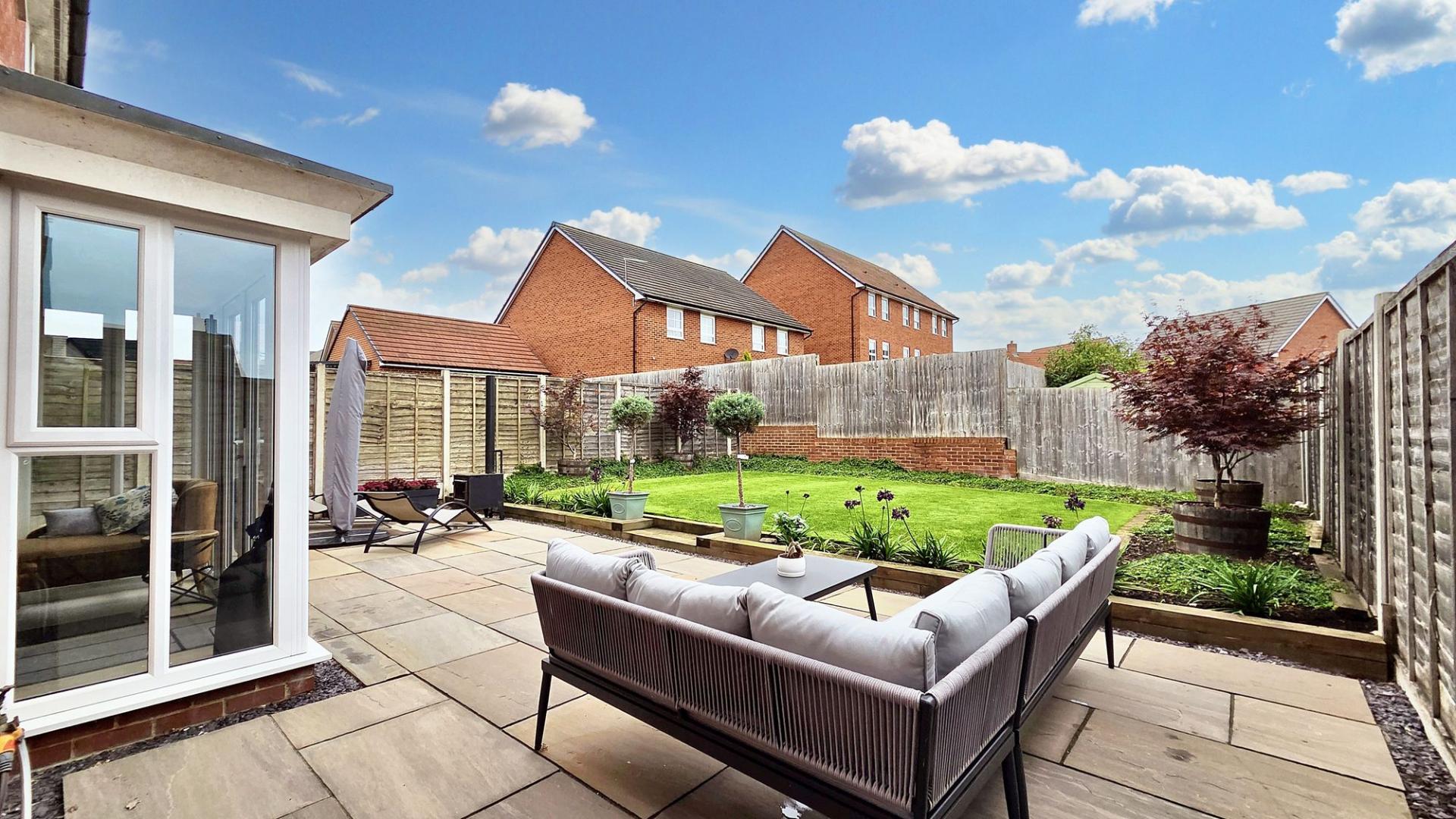 - Low-Maintenance Rear Garden – Private garden with a paved patio ideal for outdoor dining and a neat lawn, offering a relaxed and easy-to-manage outdoor space.