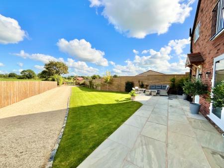 - Landscaped gardens with Indian stone patio, lawn, and gated driveway with planning for a double garage