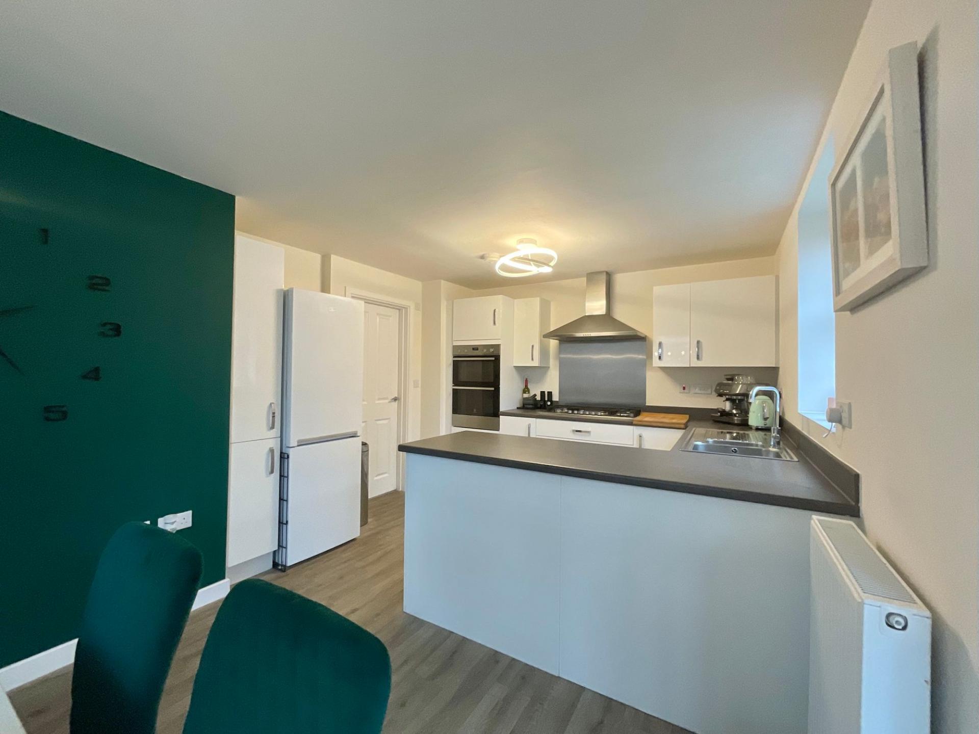 - Spacious kitchen/diner with integrated appliances, breakfast bar, and French doors to the garden.