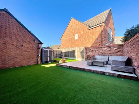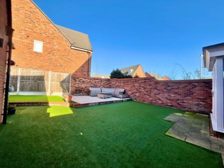 - Low-maintenance garden with artificial grass, patio area, and a unique putting green.