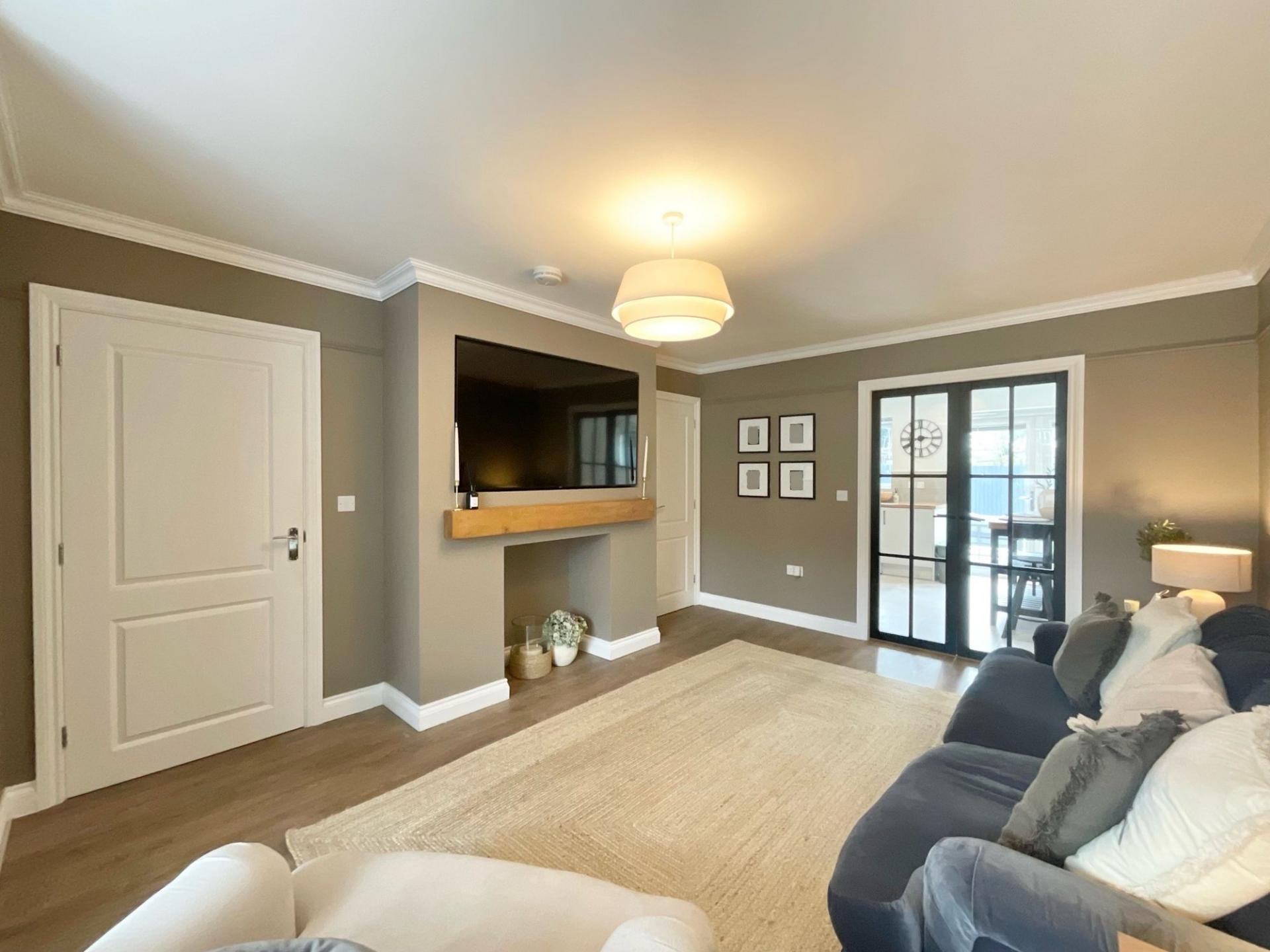 The spacious living room is positioned at the front of the property and provides a comfortable yet elegant space to relax. The room enjoys plenty of natural light and offers a welcoming setting for both everyday living and entertaining. A useful under-stairs storage cupboard is also accessible from the living room, providing practical additional storage.