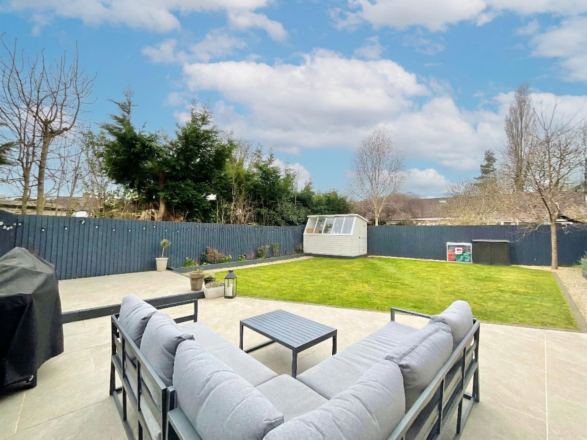 • Private rear garden with patio area, lawn and garden shed.