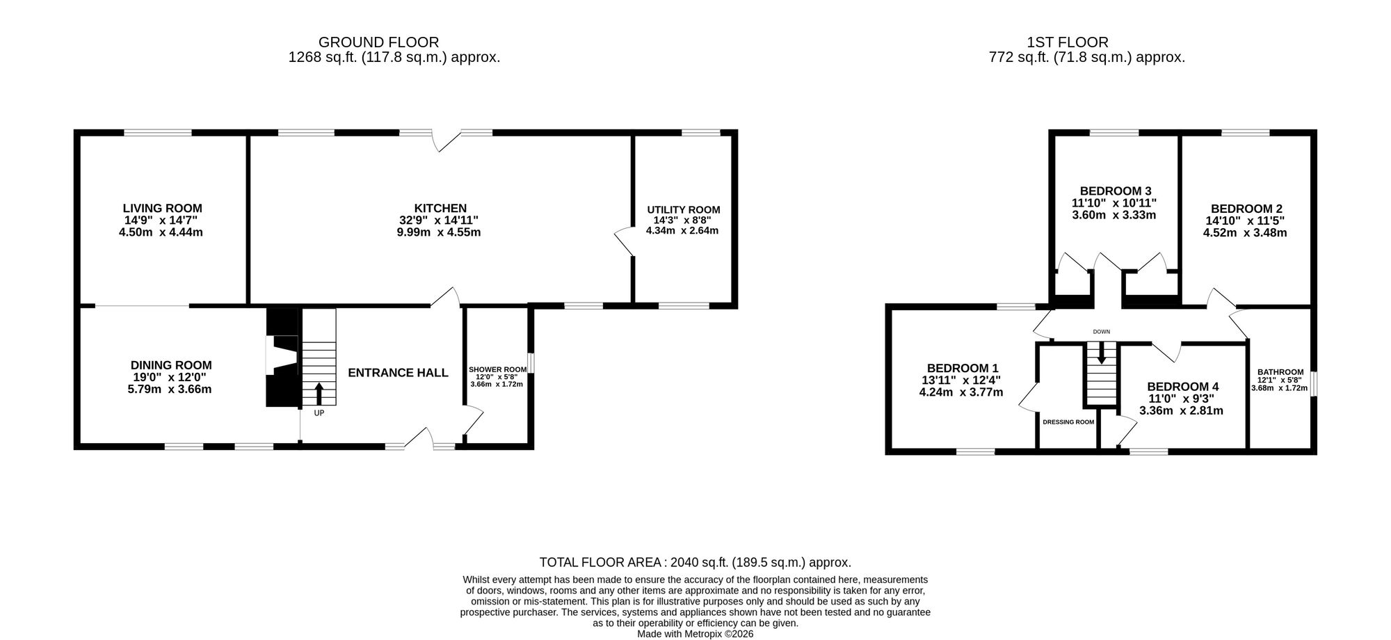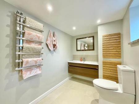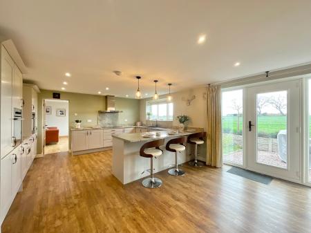 - High-spec kitchen with integrated appliances and utility room with space for washer, dryer, and dishwasher.