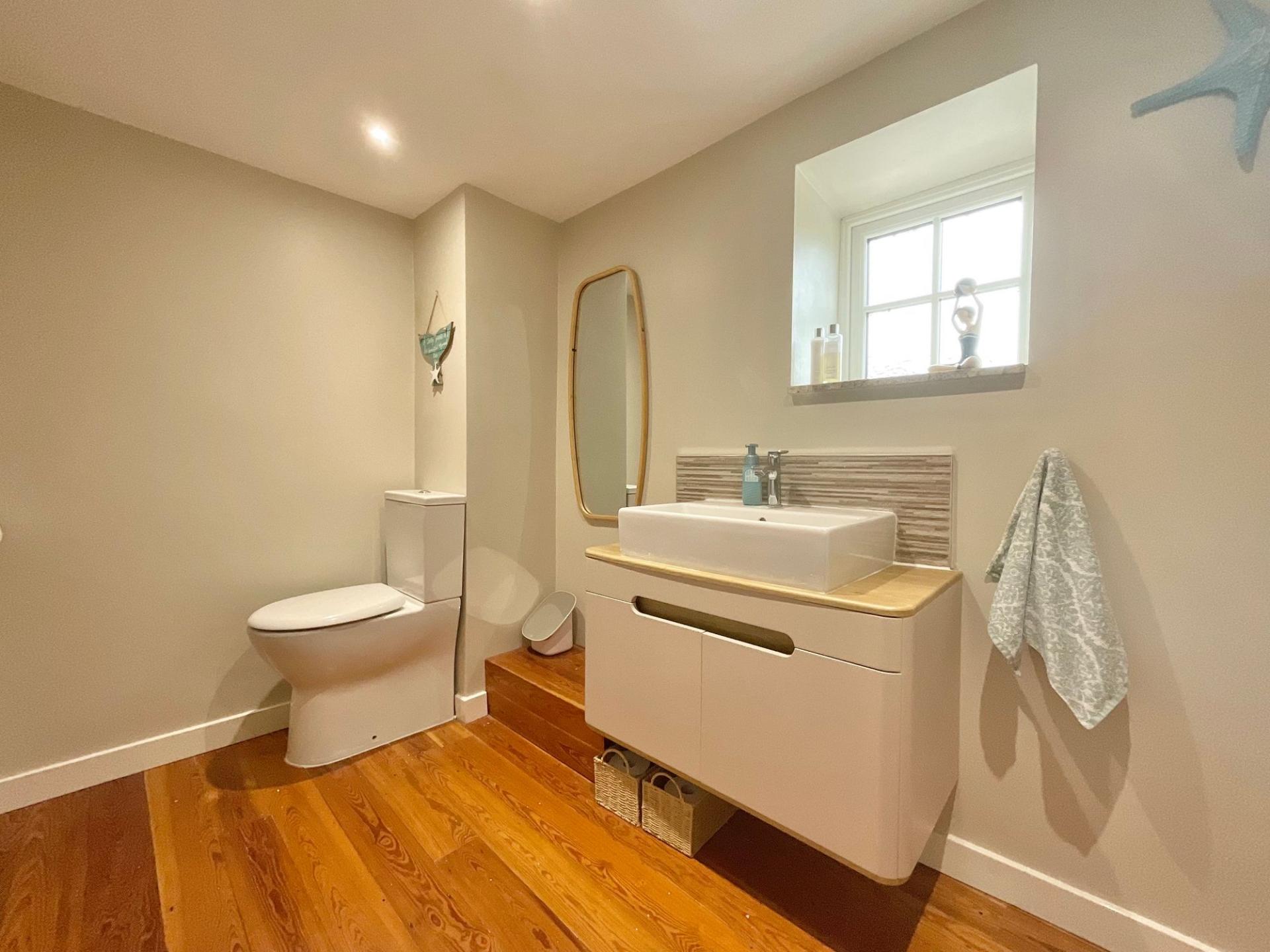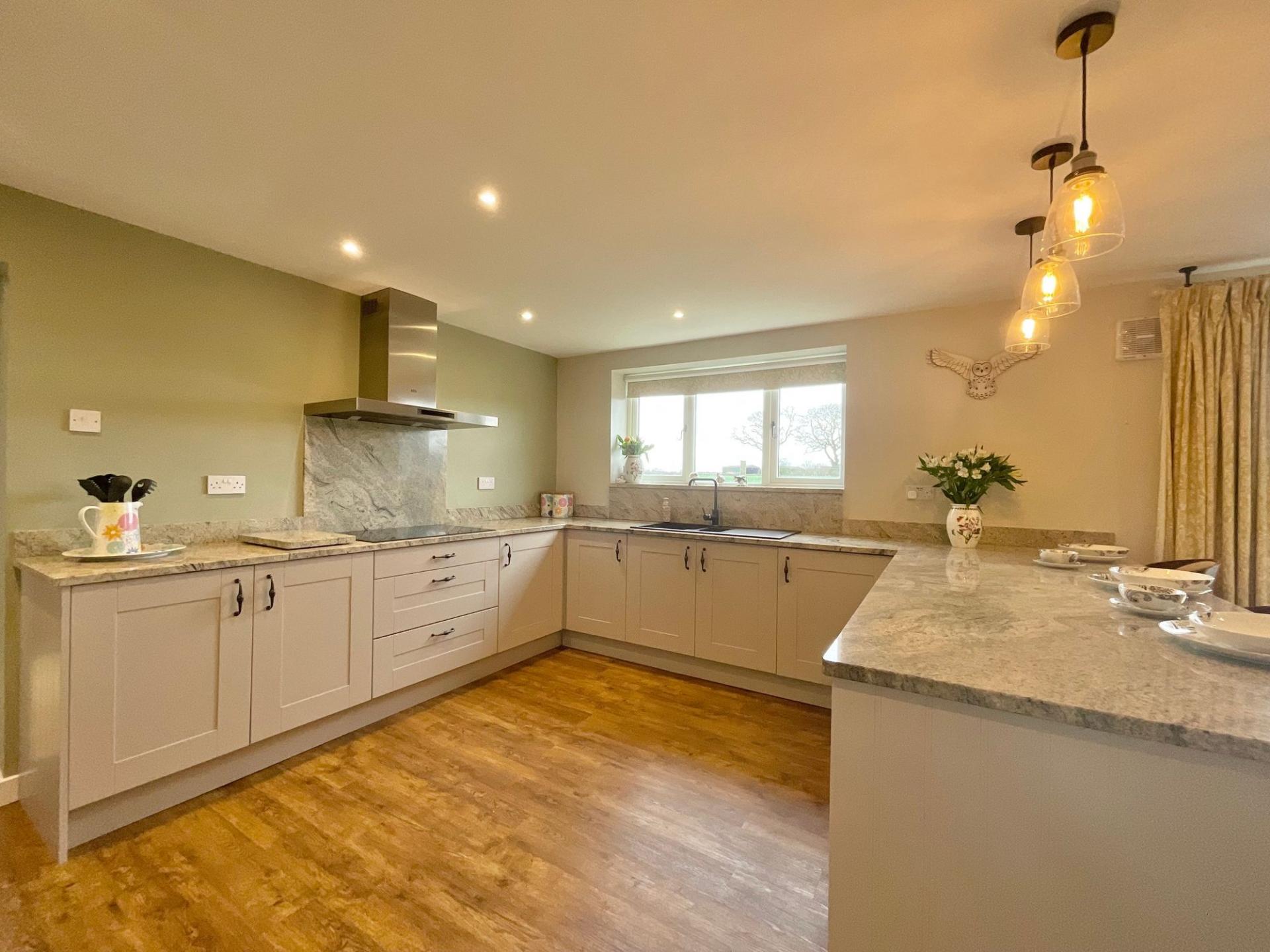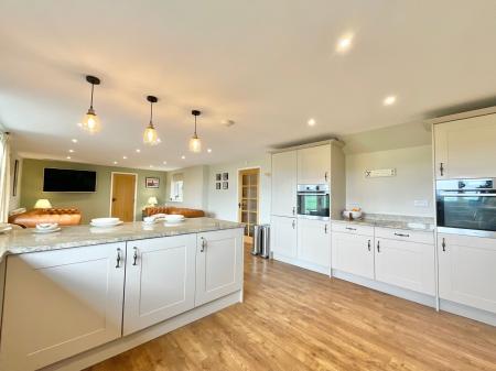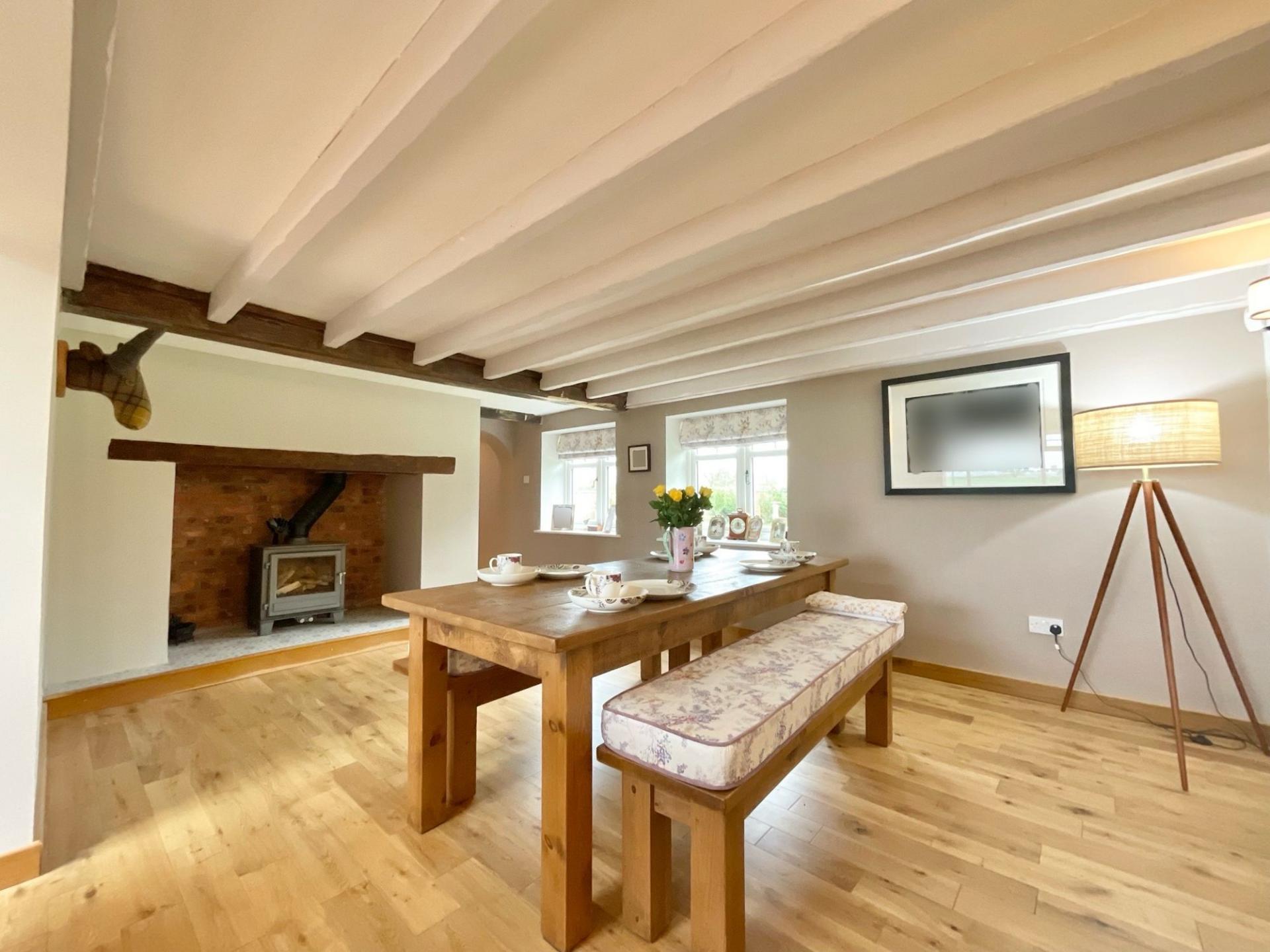 - Light-filled living spaces with skylight, log burner, sociable kitchen seating, and breakfast bar for entertaining.