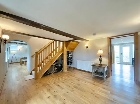 - East front and west rear gardens with patio, driveway for a number of vehicles, garage, and approx. one acre of land included.