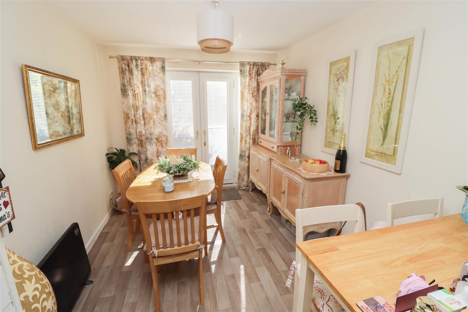 Inside, the property has a welcoming entrance hallway, with a convenient ground-floor WC and additional storage, a bright and airy lounge and a modern kitchen-dining room which is well-equipped with a range of wall and floor units, an integrated oven and hob, and French doors leading to the rear garden. Upstairs, there are three good-sized bedrooms, offering ample space and there is a family bathroom WC with an overhead shower. Further benefits include gas central heating and double glazing.