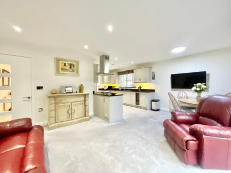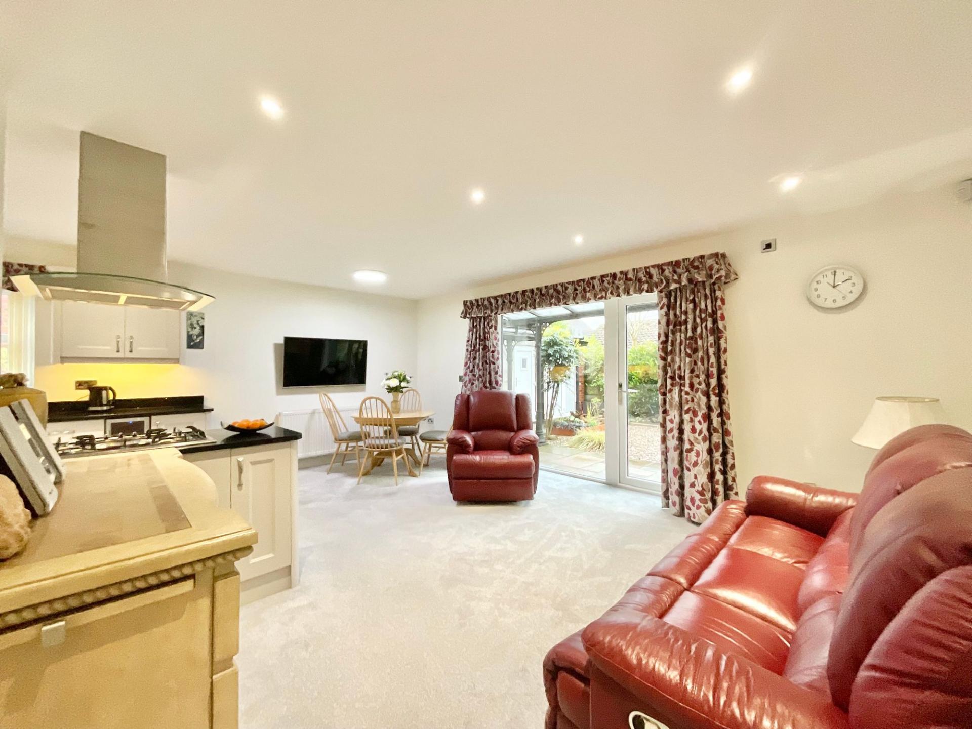 - Bright and spacious living room with bay window, French doors and hidden log burner. Open-plan kitchen/living/dining with shaker-style kitchen and a range of integrated appliances.