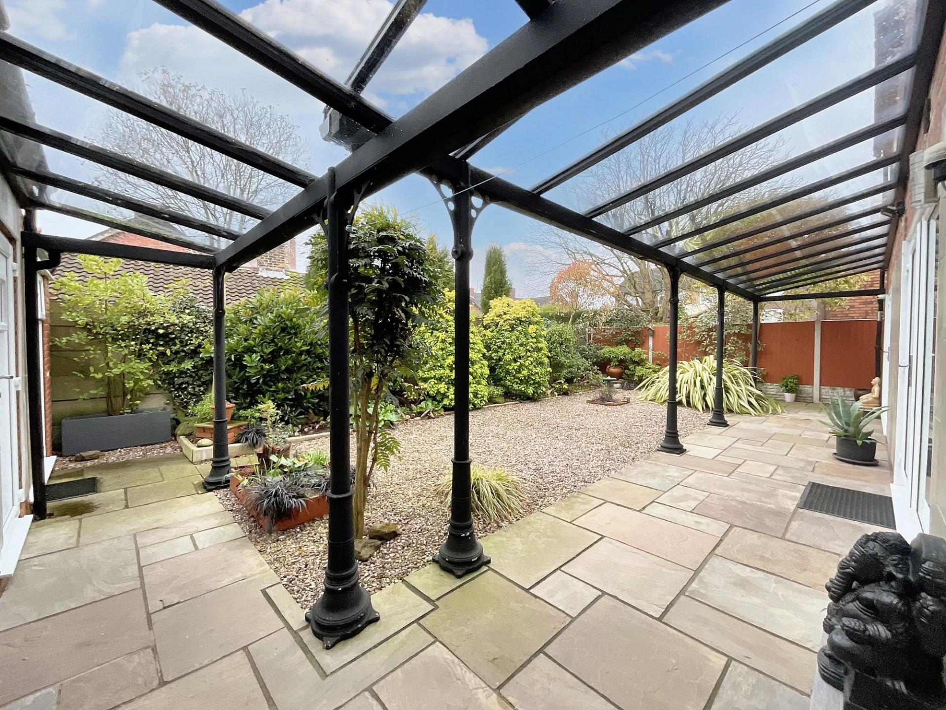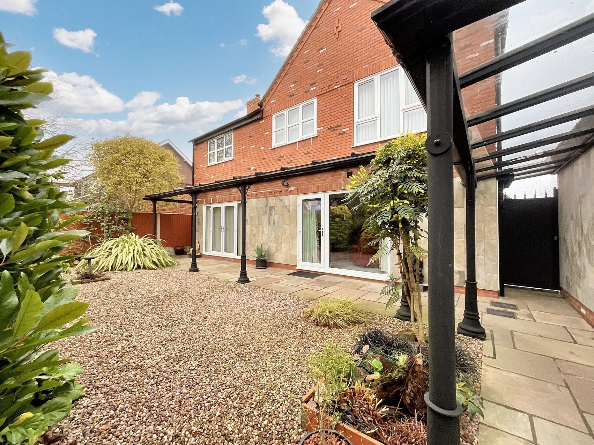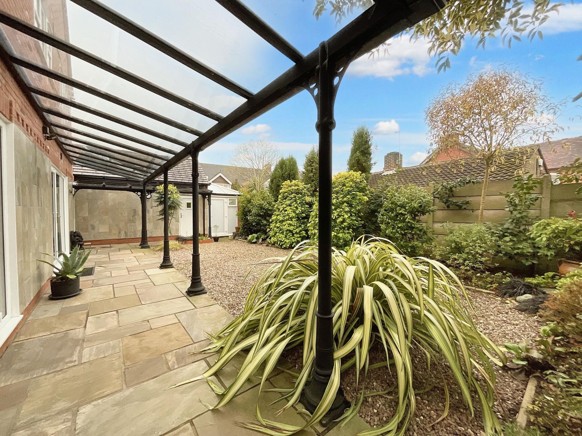 - Low-maintenance rear garden with patio and gravelled seating space, and a wraparound verandah. Iron electric gated entrance leading to driveway and single garage.