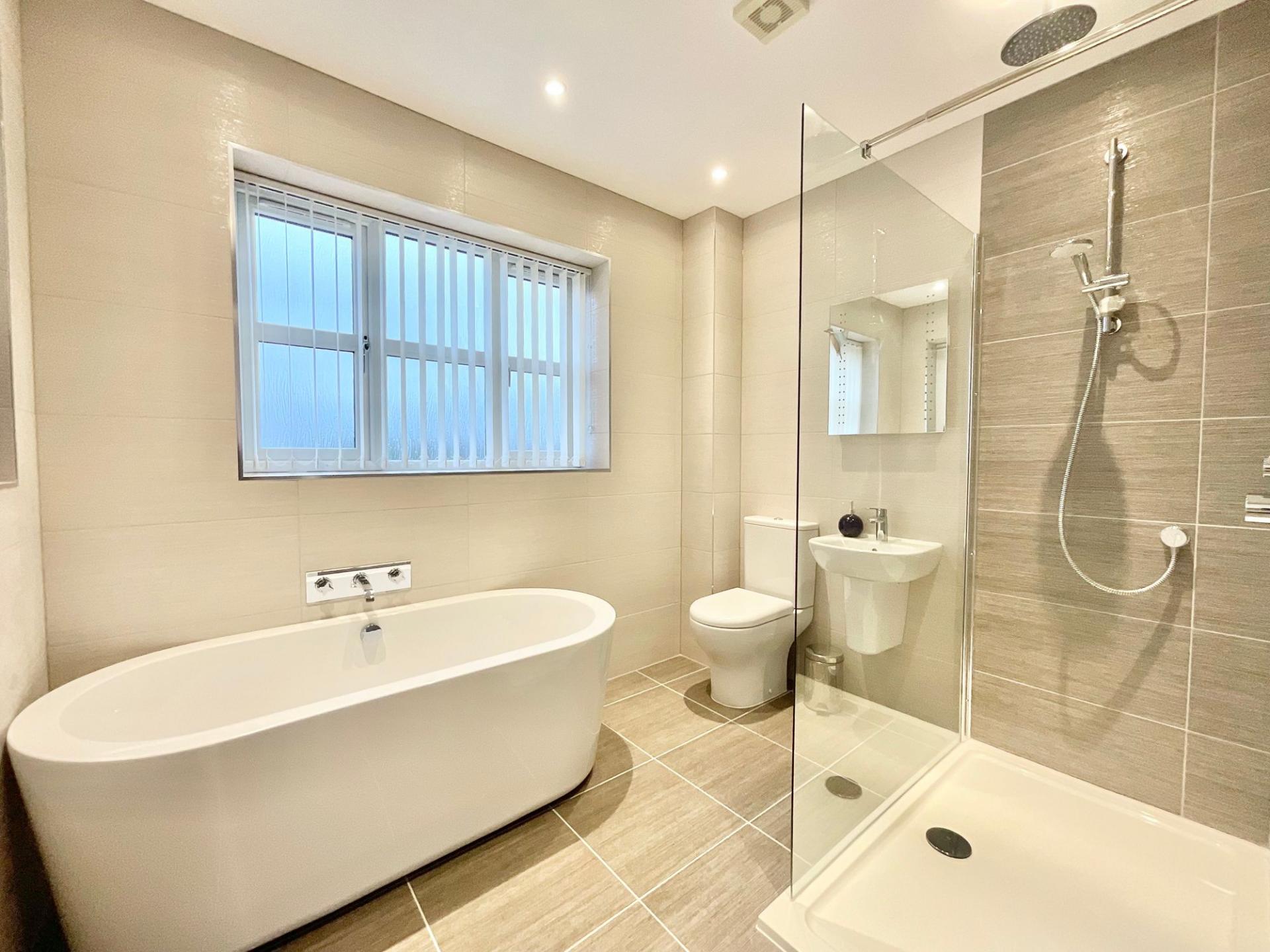 - Four generously sized double bedrooms including a master suite with its own dressing area and en suite shower room, plus a family bathroom with a freestanding double-ended bath and walk-in shower.