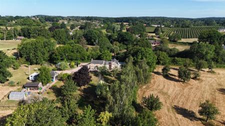 Formal Gardens - To the front of the property, formal gardens contain three old Perry Pear trees, mature Silver Birches, further mature trees and shrubs. There are large lawned areas, a wildlife pond, pergola area enjoying the vista through to the paddocks and towards May Hill. There is a further orchard area with apple, damson and plum trees; greenhouse and bee keeping area.
