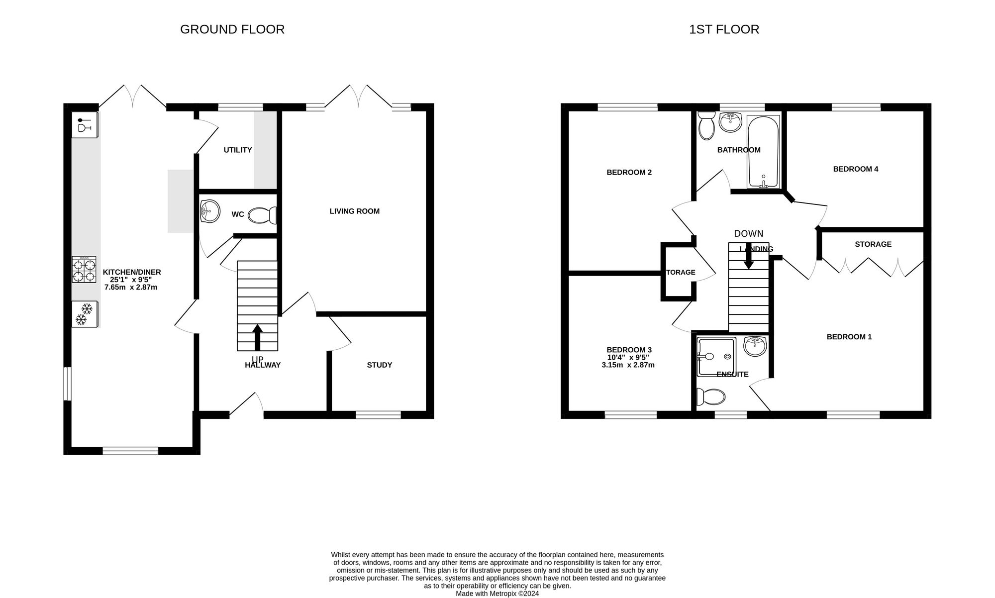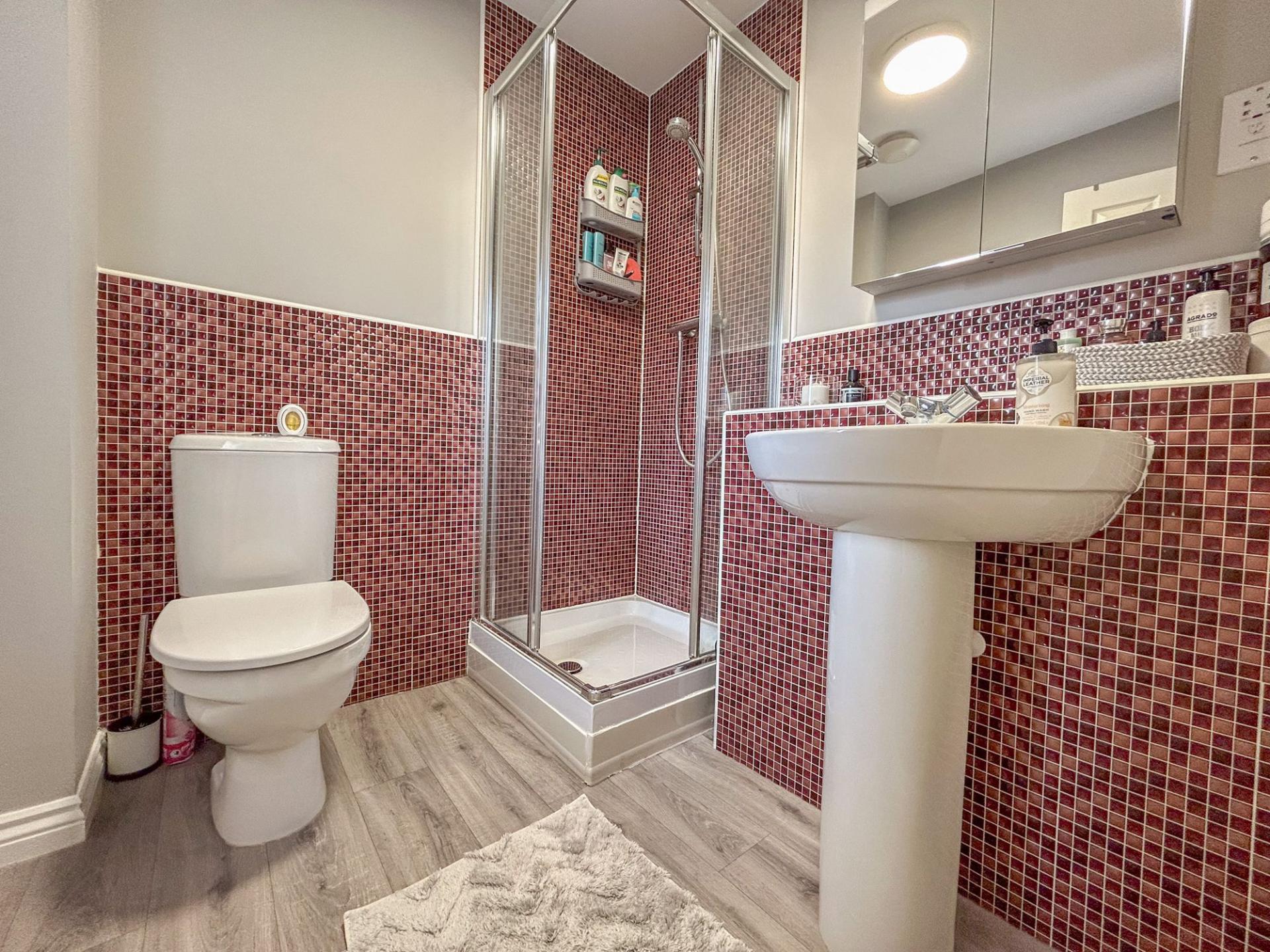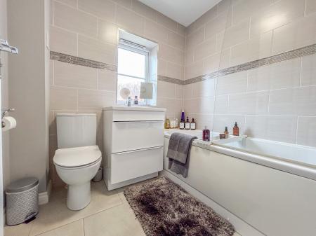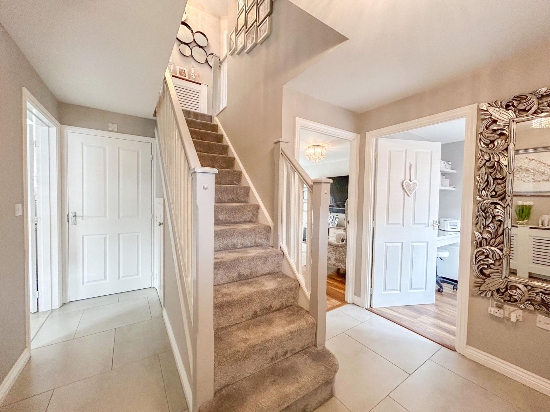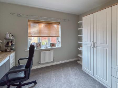 To the first floor there are four bedrooms, all of which are double. The principal bedroom benefits from fitted wardrobes, ideal for utilising space. There is an en-suite shower room, while the family bathroom from the landing has a bath suite.