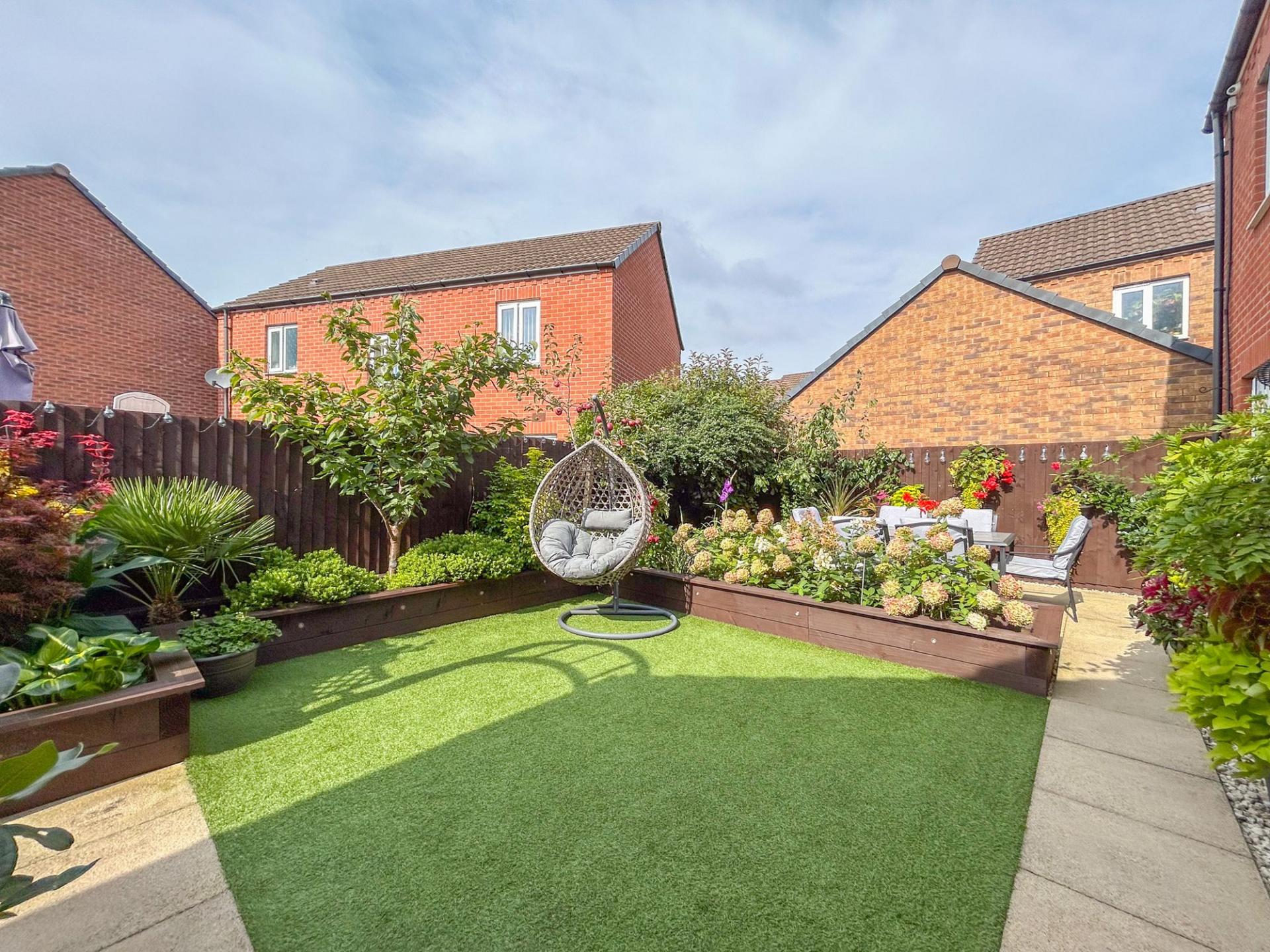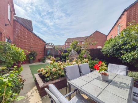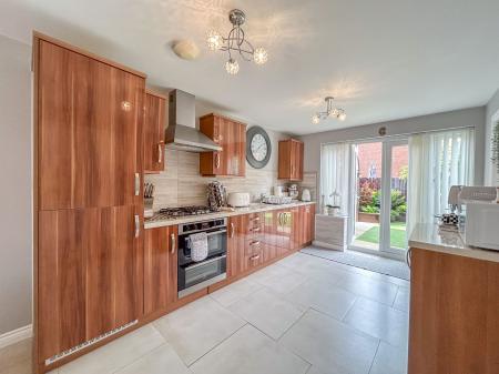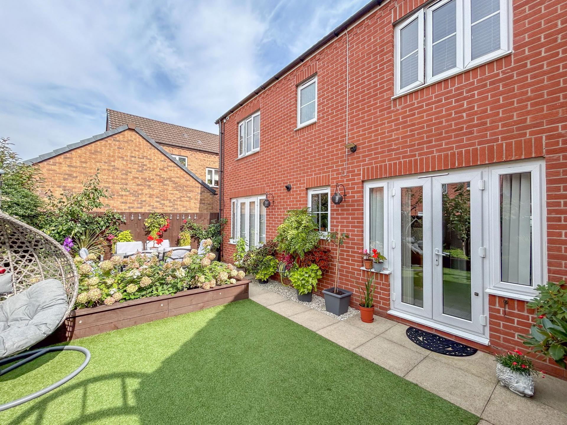Welcomed into a spacious hallway, on the ground floor there is a study to the front of the property, with a living room to the rear, opening to the garden. The kitchen/dining room can be found to the left of the hallway, which is open plan and triple aspect, with double doors similarly opening to the garden. The kitchen benefits from a range of sleek wall and base units with integrated appliances to include an oven, four-ring gas hob, fridge/freezer and a dishwasher. There is a useful utility room and WC from the hallway. The gardens are truly spectacular, landscaped to an exceptional standard with a patio area for al fresco dining, low maintenance artificial lawn, raised boarders with beautiful shrubs, fruit trees and flowers and a separate section for growing fruit and vegetables. There is a driveway to the side of the property offering parking, in addition to the garage.