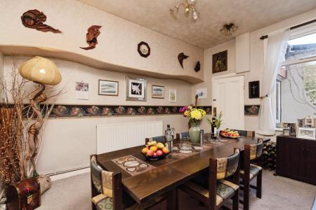 At the end of the hallway is the dining room providing access to the kitchen, which offers ample unit and worktop space. It leads to the rear garden and conveniently connects to the utility room and a well-appointed shower room, which is easily accessible.