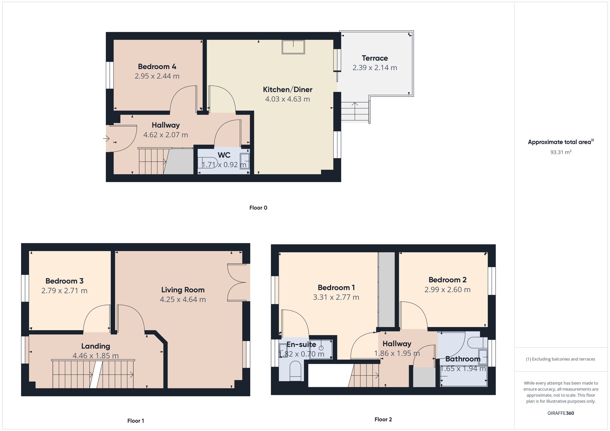 On the second floor there are two further bedrooms, both of which are double. The principal bedroom has an en-suite shower room, while the family bathroom has a bath and overhead shower.