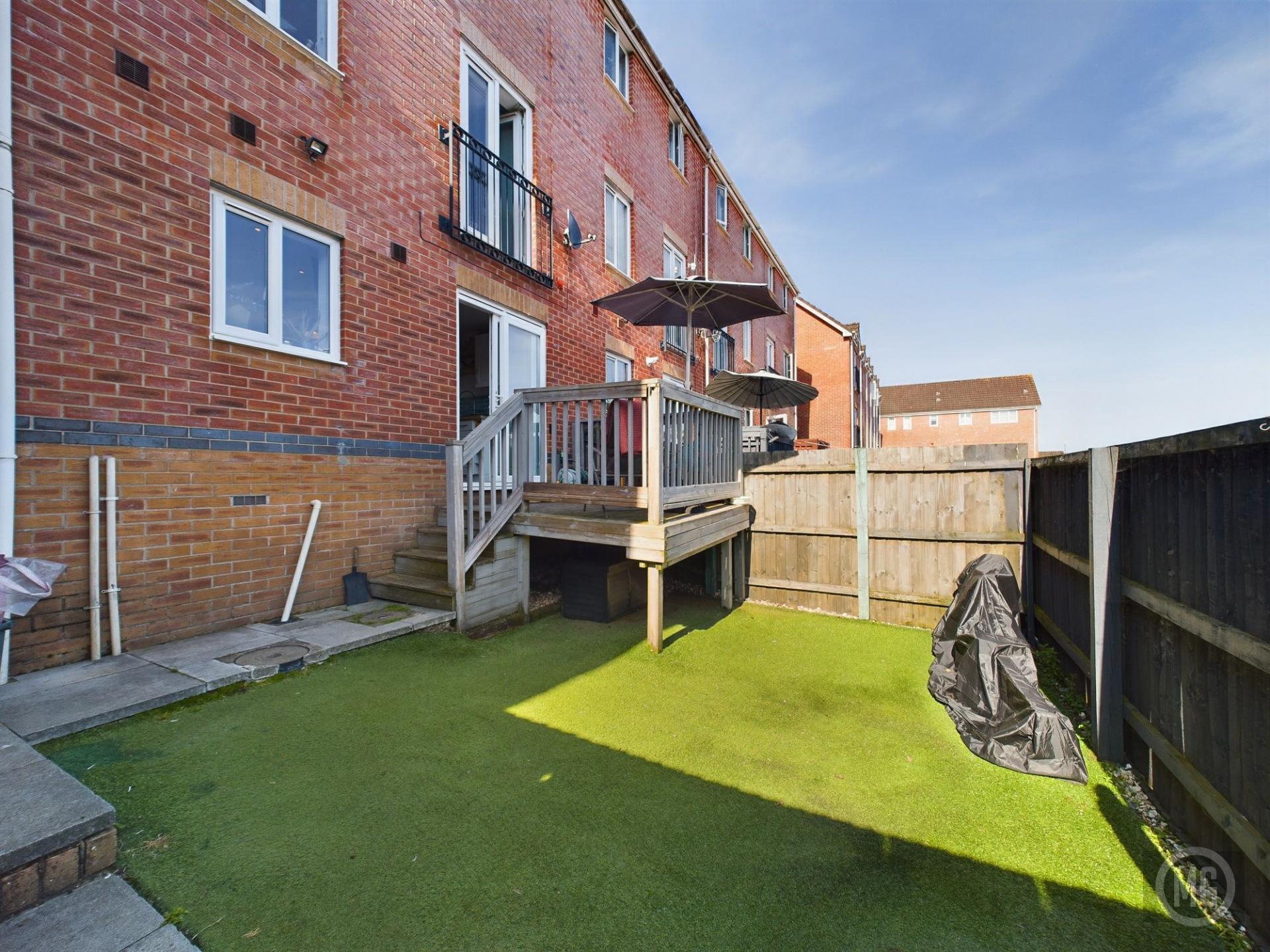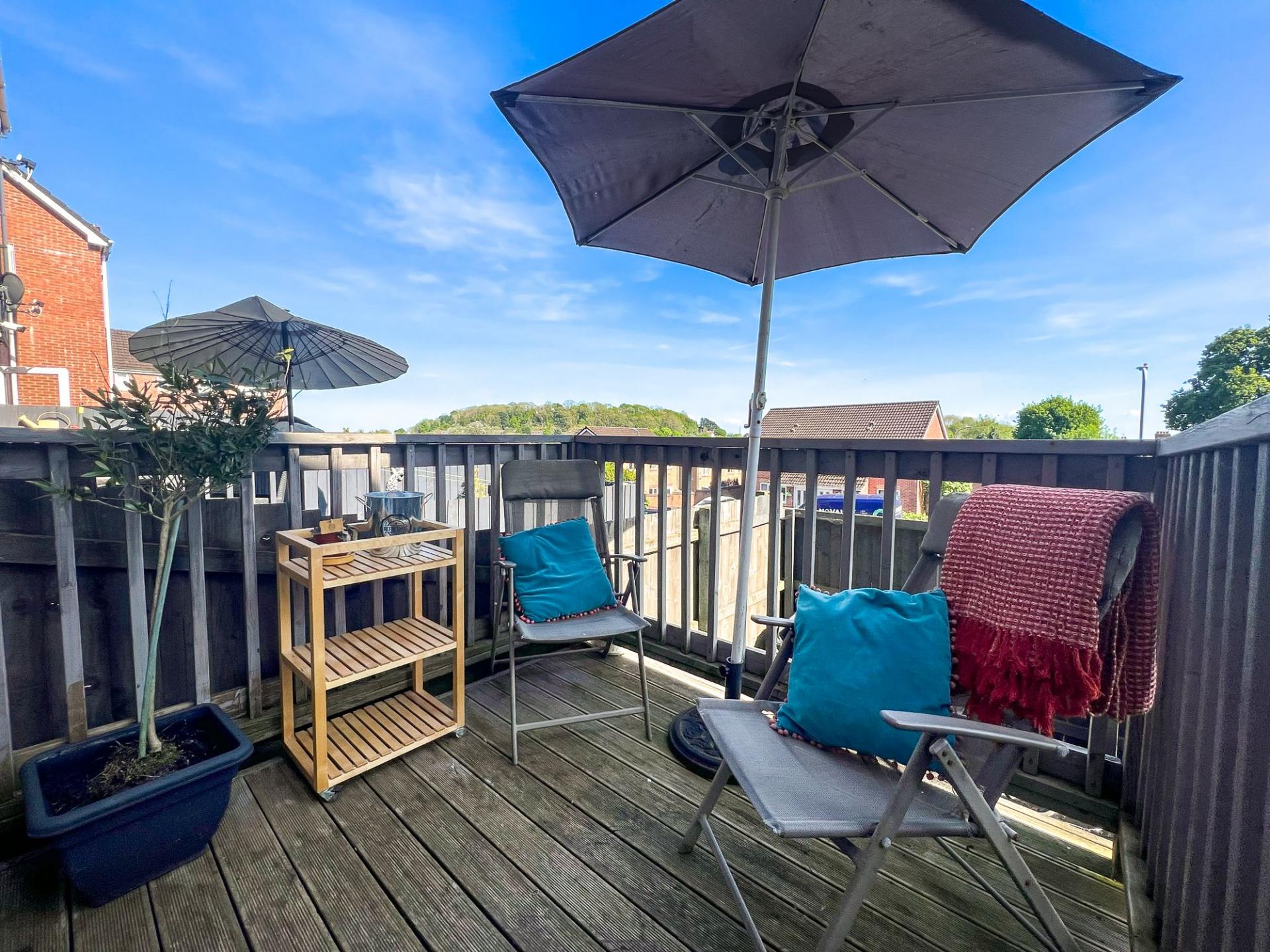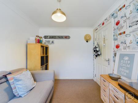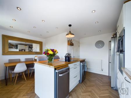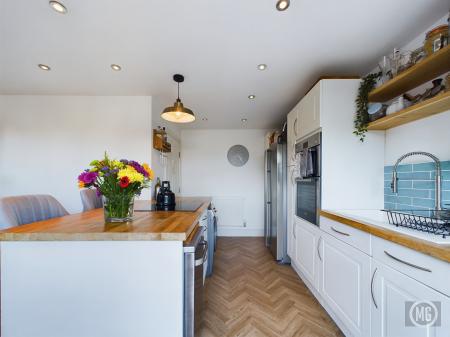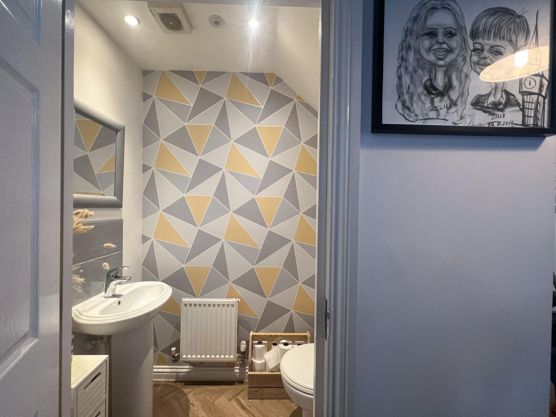 On the ground floor we have the stylish kitchen/diner boasting a large breakfast bar, and a range of wall and base units with an integrated wine rack. The kitchen also benefits from an integrated double oven and induction hob, as well as plumbing for a washing machine and slimline dishwasher. We also have another reception room found from the entrance hallway which is currently being used for hobbies, offering a versatile space ideal for a home office or guest bedroom. A convenient downstairs Wc can be under the stairs. The low maintenance garden can be accessed from the kitchen with a raised terrace and artificial lawn, creating the perfect space for family entertaining and alfresco dining. From the garden there is rear access to the garage and driveway, providing off-road parking for two vehicles.