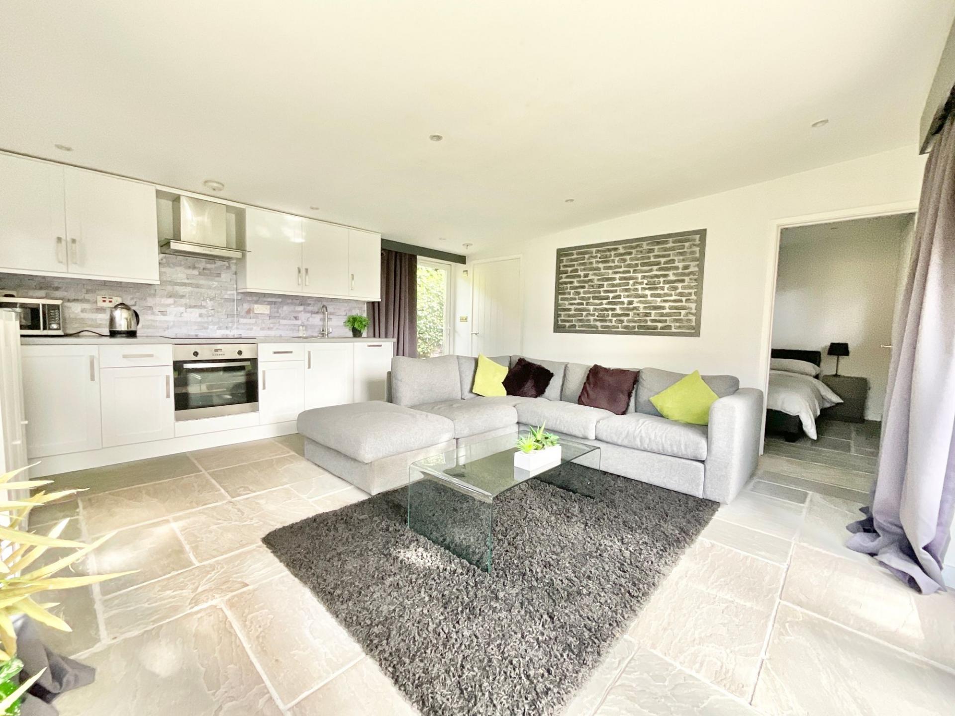 - A contemporary detached lodge promises a modern kitchen/living area, double bedroom and bathroom, along with bifold doors out to the garden.