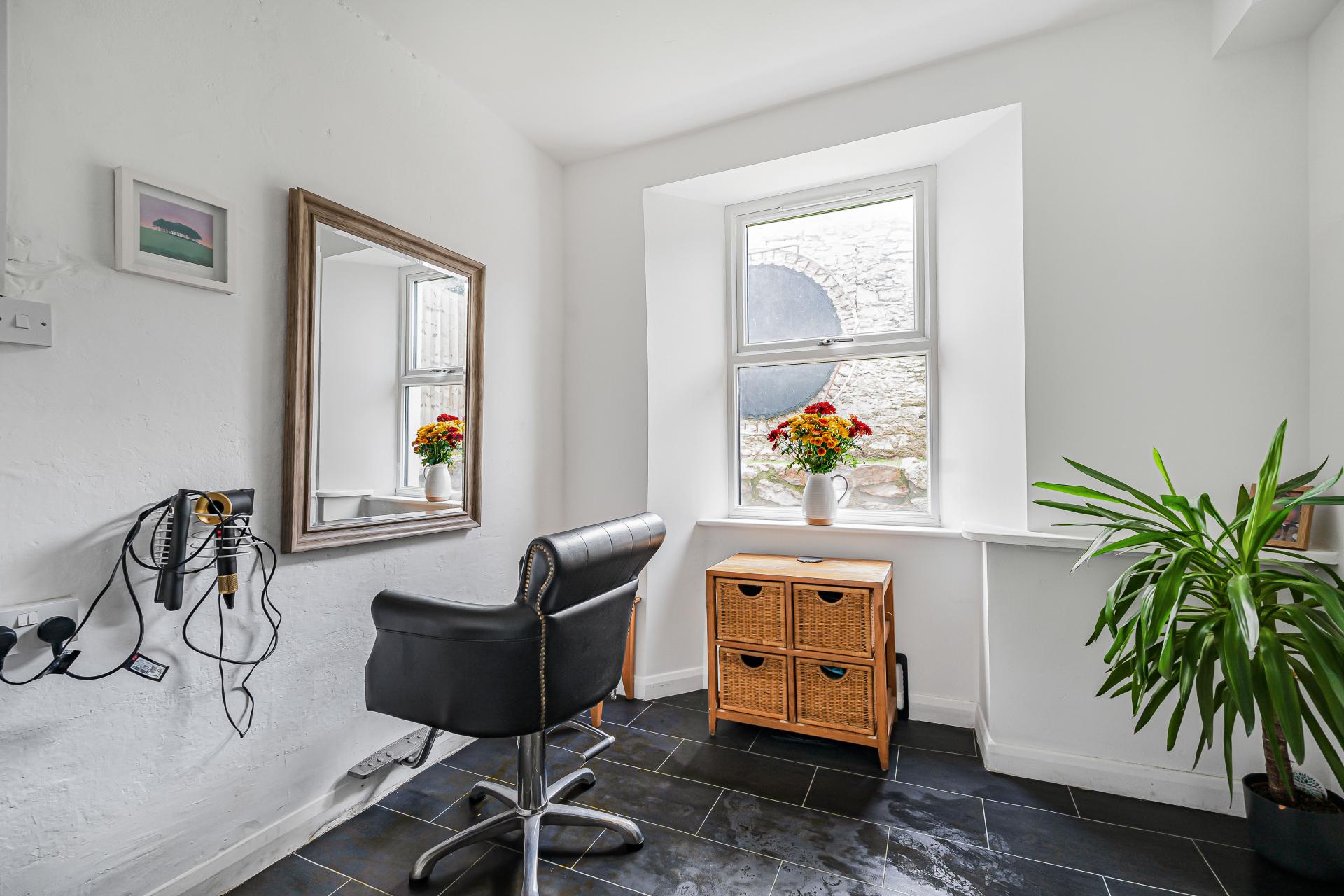 Also off the hallway is a third reception room, currently used as a home office – a quiet and versatile space for remote working or study, with direct access to the rear garden. Beyond this is a practical utility room, offering useful space for laundry and storage.