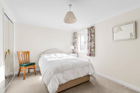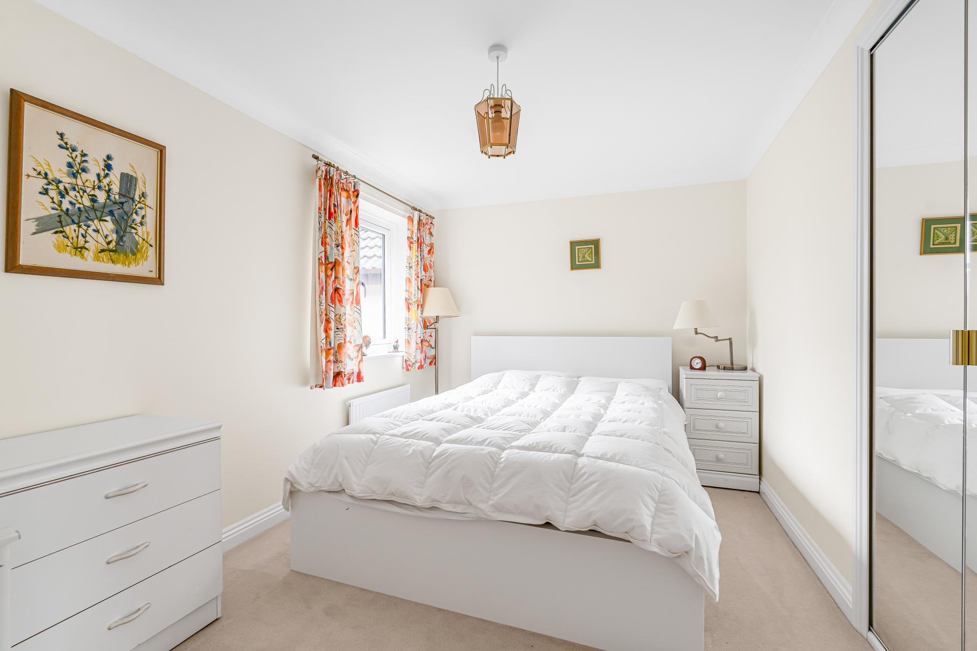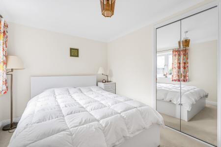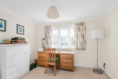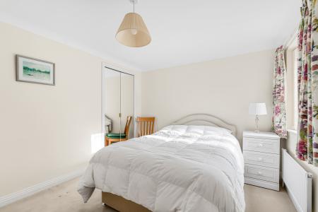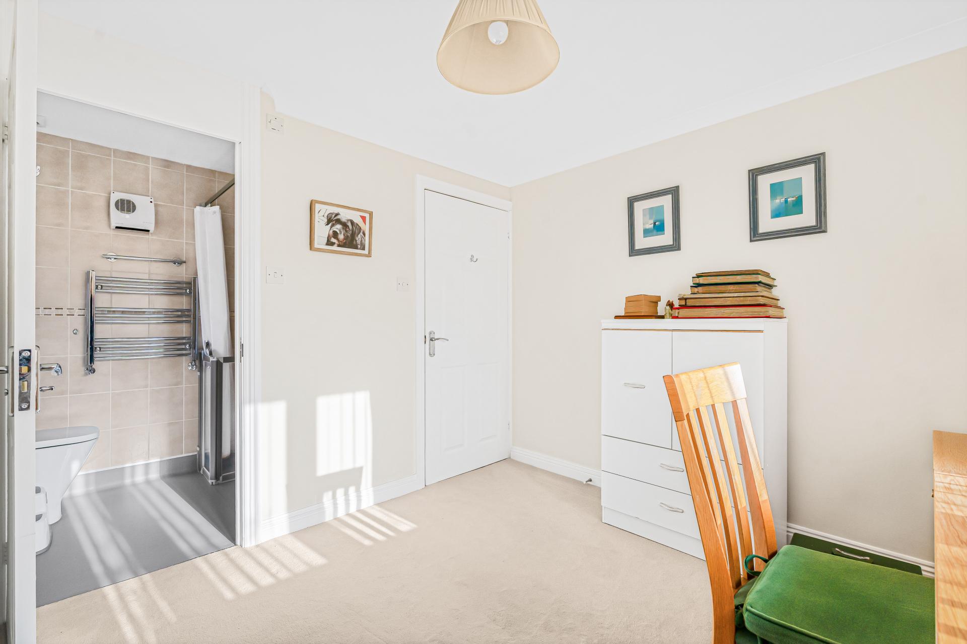There are three well-proportioned bedrooms, all presented in a light, neutral style. The principal bedroom is a spacious double with a pleasant front outlook and built-in wardrobes. Bedroom two is another comfortable double with views over the rear garden and also benefits from a built-in wardrobe. Bedroom three is a versatile room, currently used as a home office, ideal as a nursery or study, and benefits from an en-suite shower room with walk-in shower, wash hand basin and WC.