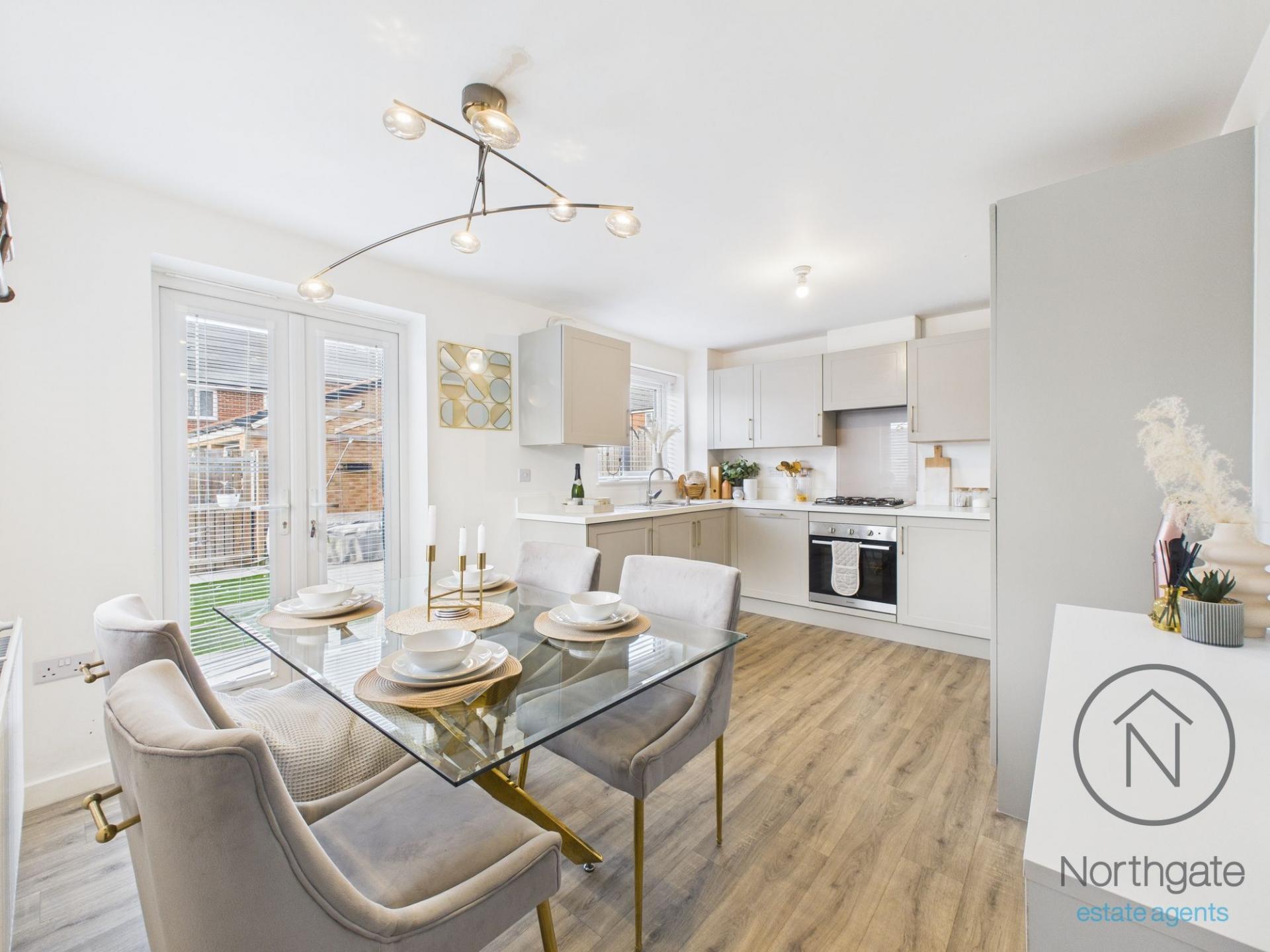 Upon entering, you are welcomed by an inviting entrance hallway providing access to a downstairs WC and a spacious, contemporary kitchen diner, finished to a high standard and complete with integrated appliances. This versatile space is ideal for both everyday family life and entertaining, enhanced by patio doors that flood the room with natural light and open out to the rear garden. The generously proportioned living room offers a calm and comfortable setting, thoughtfully designed for relaxation at the end of the day.