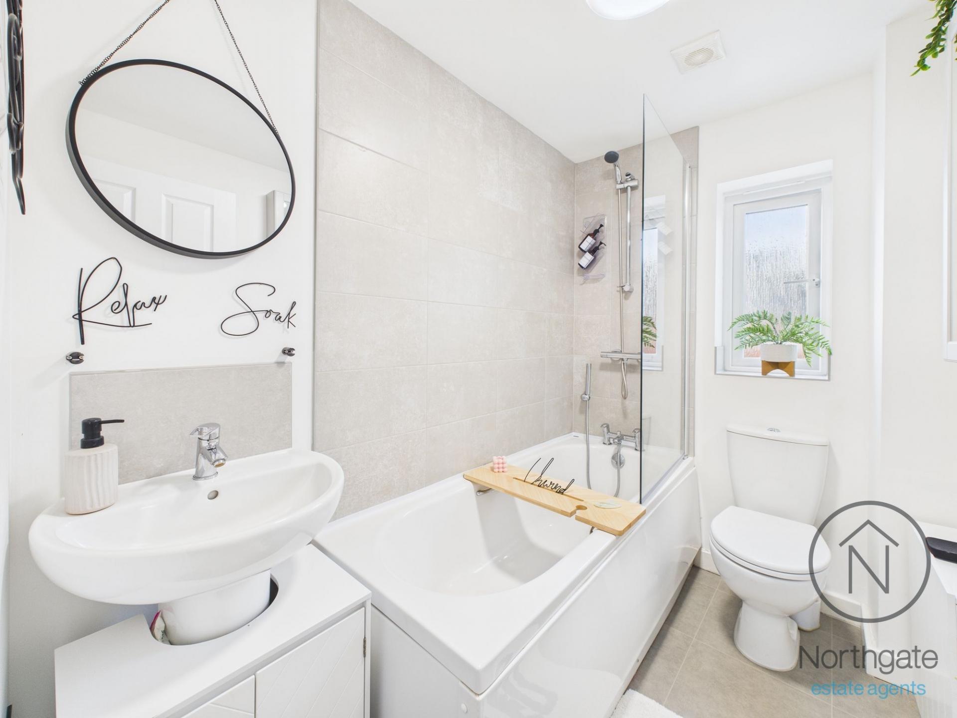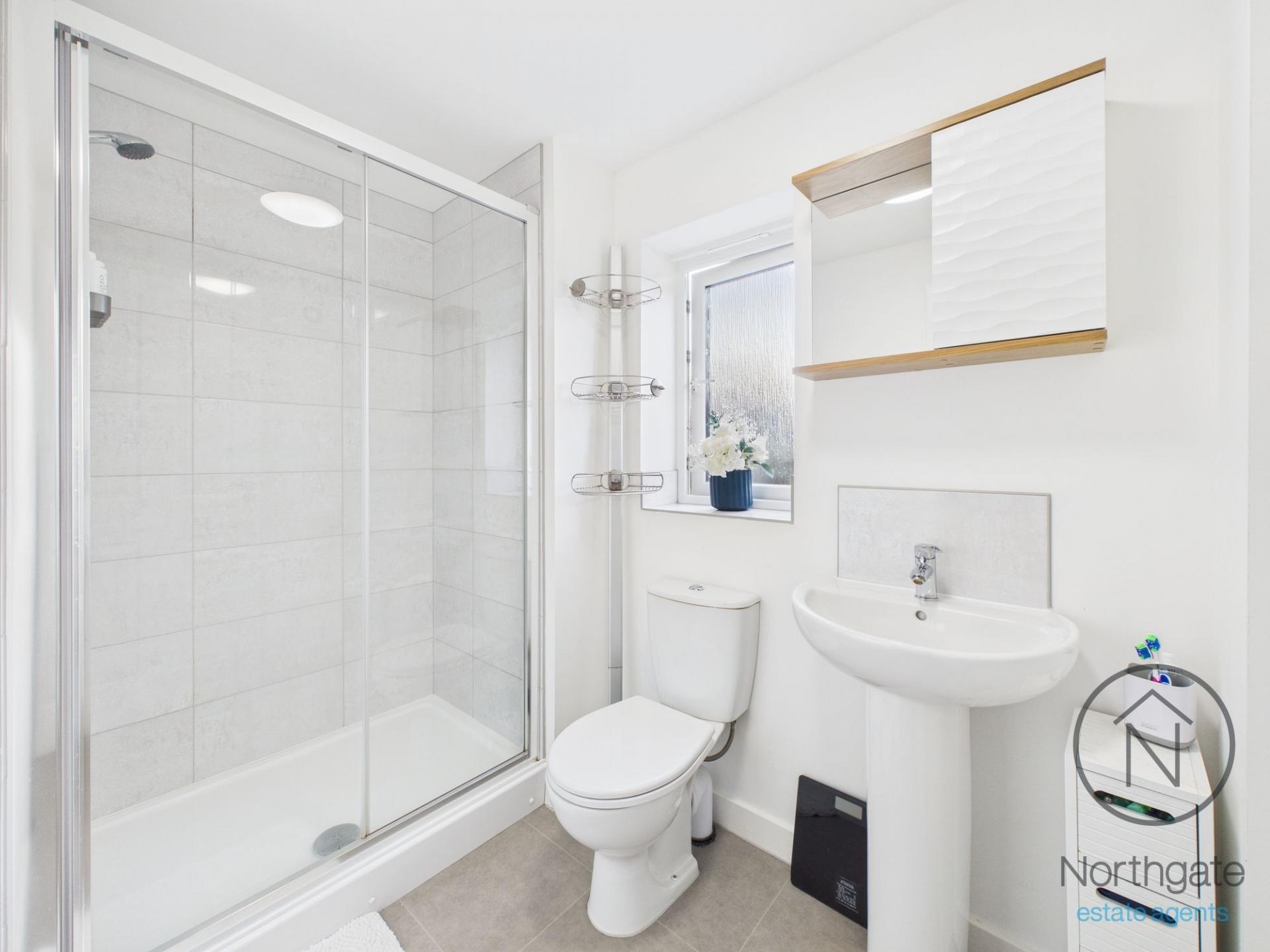 To the first floor, the property offers three well-sized bedrooms, each providing ample space for furnishings and storage. The principal bedroom benefits from a private en-suite shower room, adding a touch of luxury and convenience, while the remaining bedrooms are served by a modern family bathroom featuring sleek fittings and a stylish finish.
