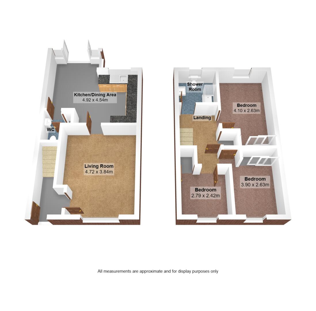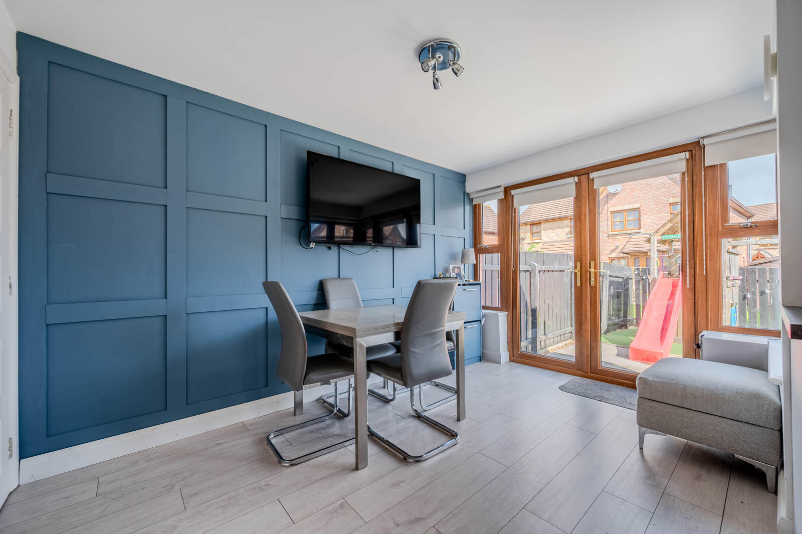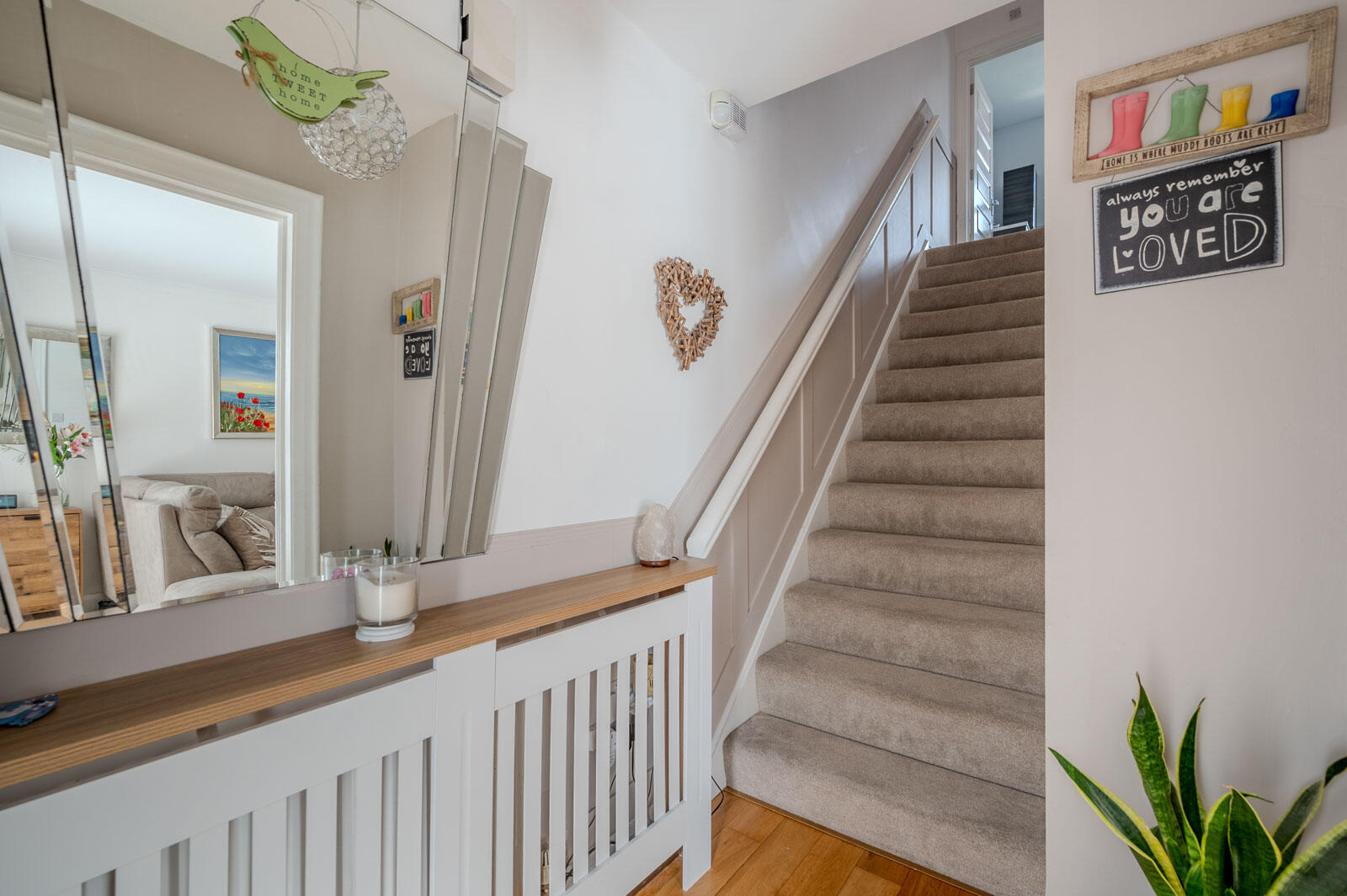 The accommodation comprises living room with a solid oak floor and good sized kitchen which is open plan to casual dining and family area. Upstairs you have three bedrooms all with built-in wardrobes and a shower room with three piece suite. Outside there is a tarmac driveway with parking to the front and fully enclosed easily maintained rear garden with artificial lawns and extensive paved patio barbecue area. Other benefits include Phoenix Gas heating, uPVC double glazed windows and downstairs WC.
