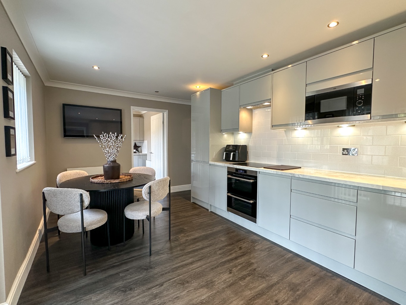 - Fitted Kitchen/Breakfast Room with a Range of Built-in and Integrated Appliances, Including Induction Hob, Double Oven, Extractor Hood & Built-in Microwave plus Ceiling Down-Lighting and Twin Open...