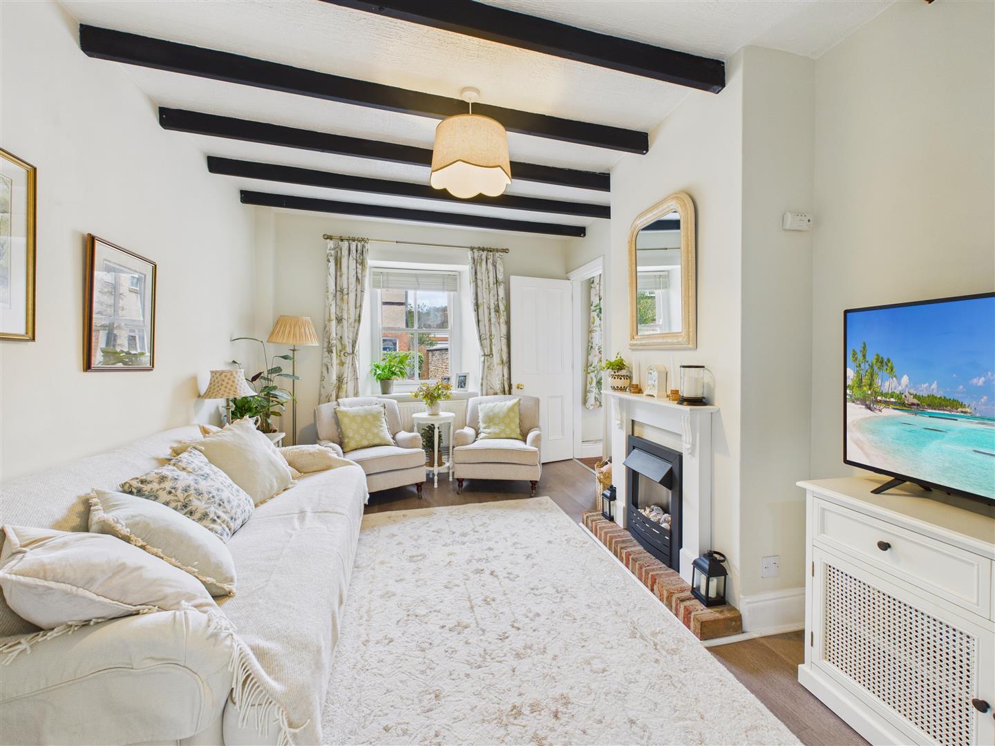 Lounge - With double glazed sash windows to front elevation. Feature fire surround housing electric fire, beams to ceiling.