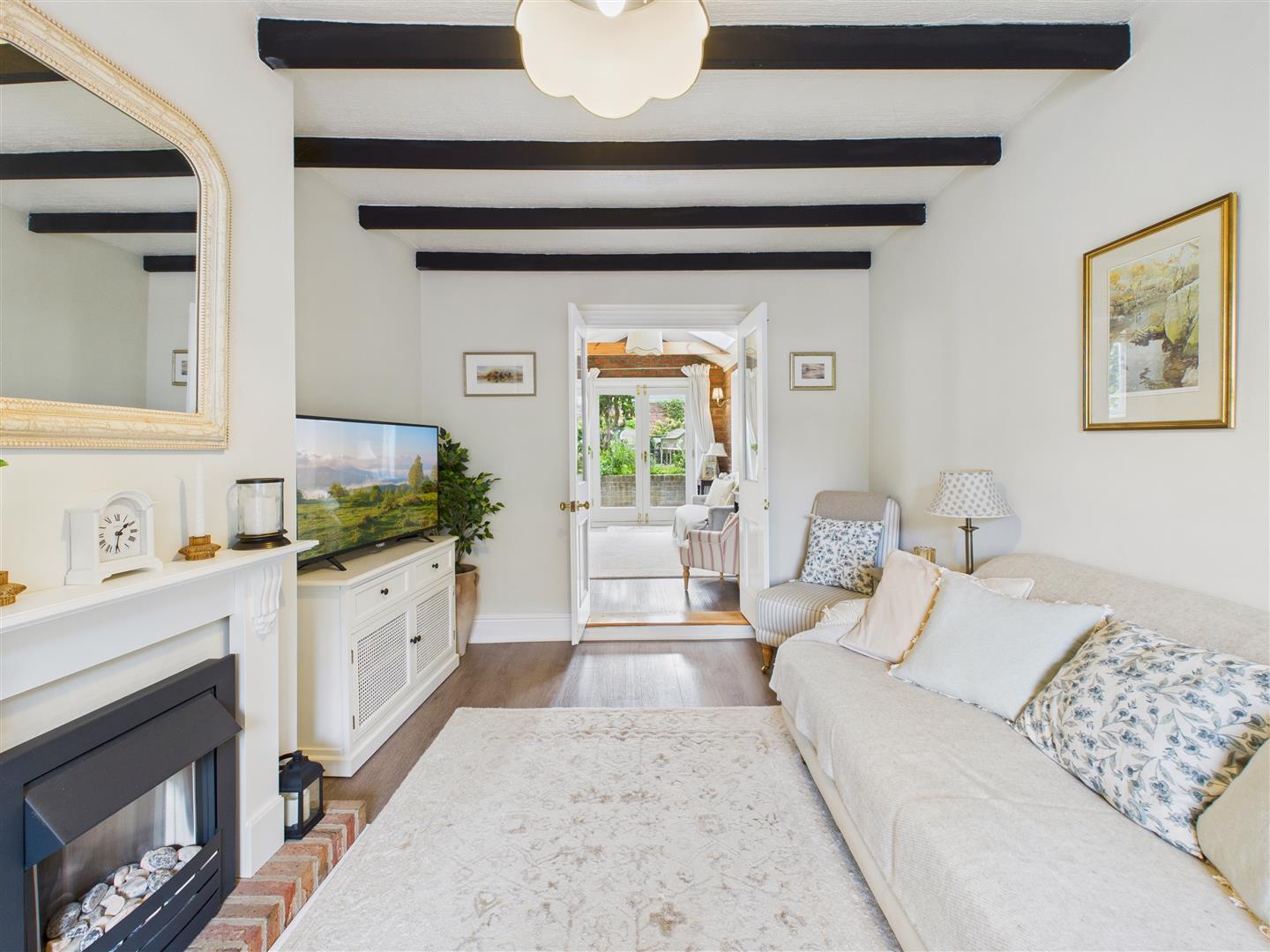Rear Sitting Room - A delightful room with vaulted ceiling, roof lights allowing light to floor in plus double glazed window to side and double doors opening out to the rear garden. Part exposed brick work to walls.