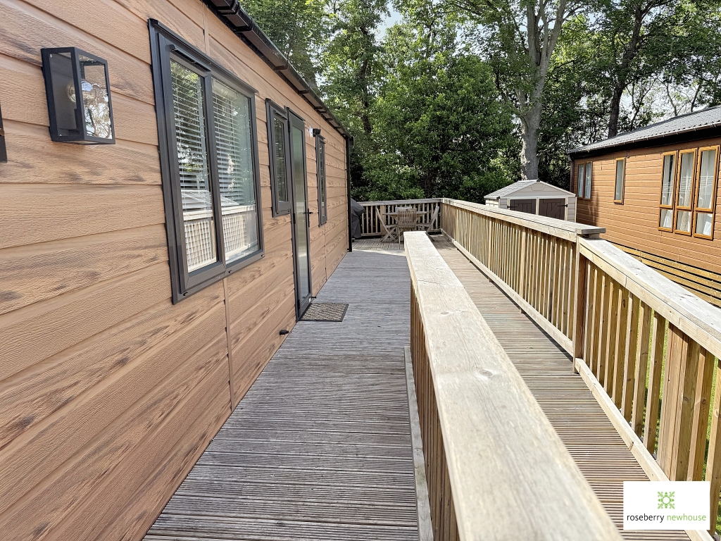 • Detached holiday lodge All year round usage Two double bedrooms Two bathrooms Moder kitchen open plan to living area Decked terrace Parking Exclusive over 50's holiday park 38 year lease