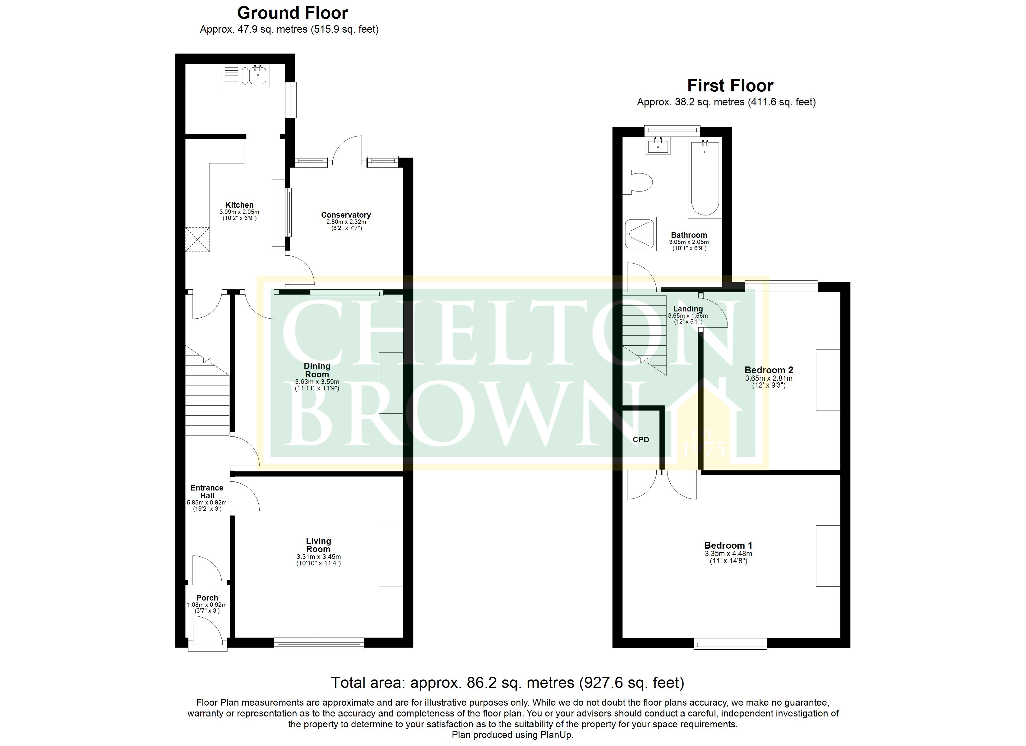 The accommodation briefly comprises entrance hall, lounge, dining room, kitchen, conservatory and dry cellar, first floor landing, two bedrooms and bathroom.