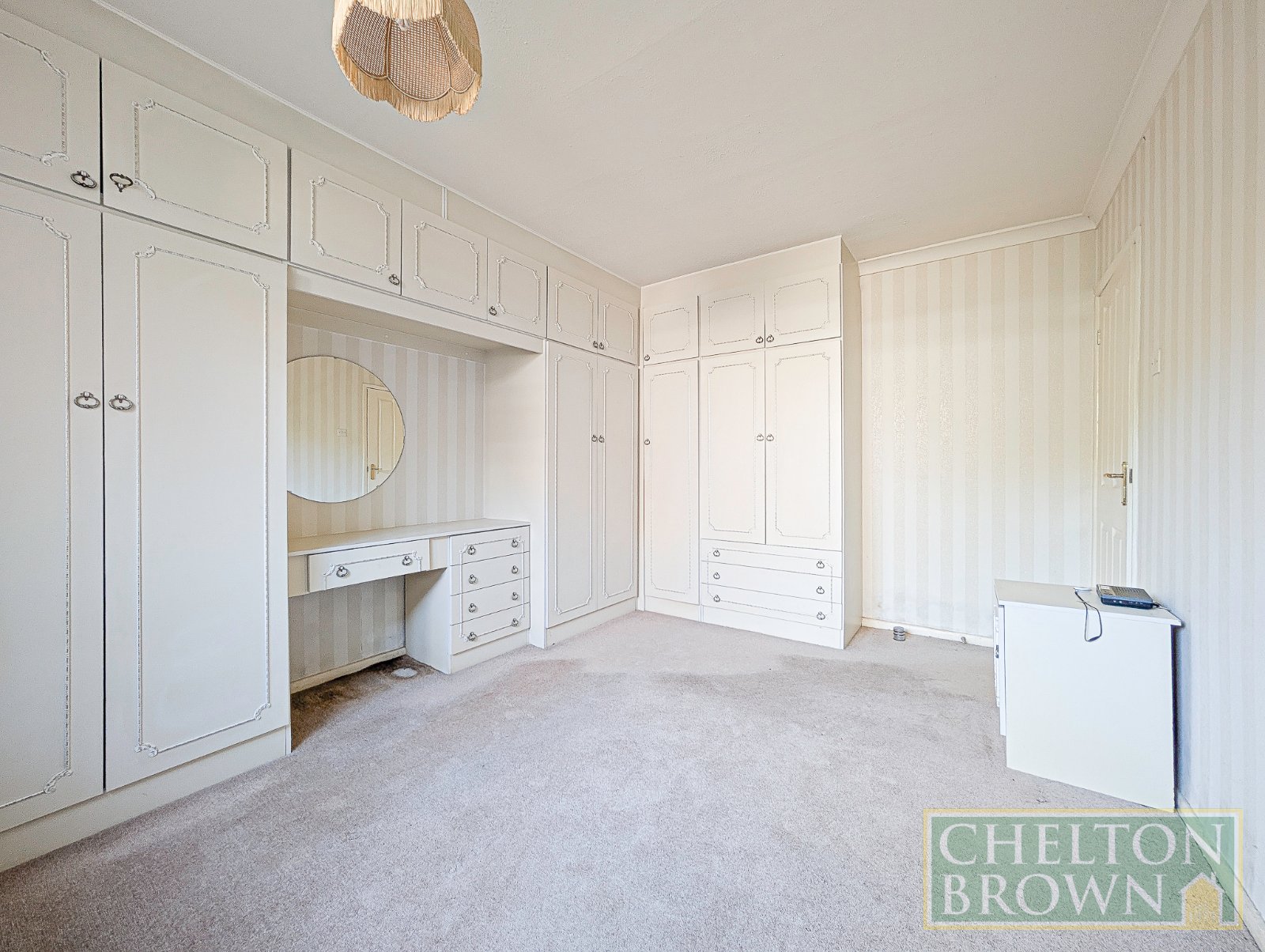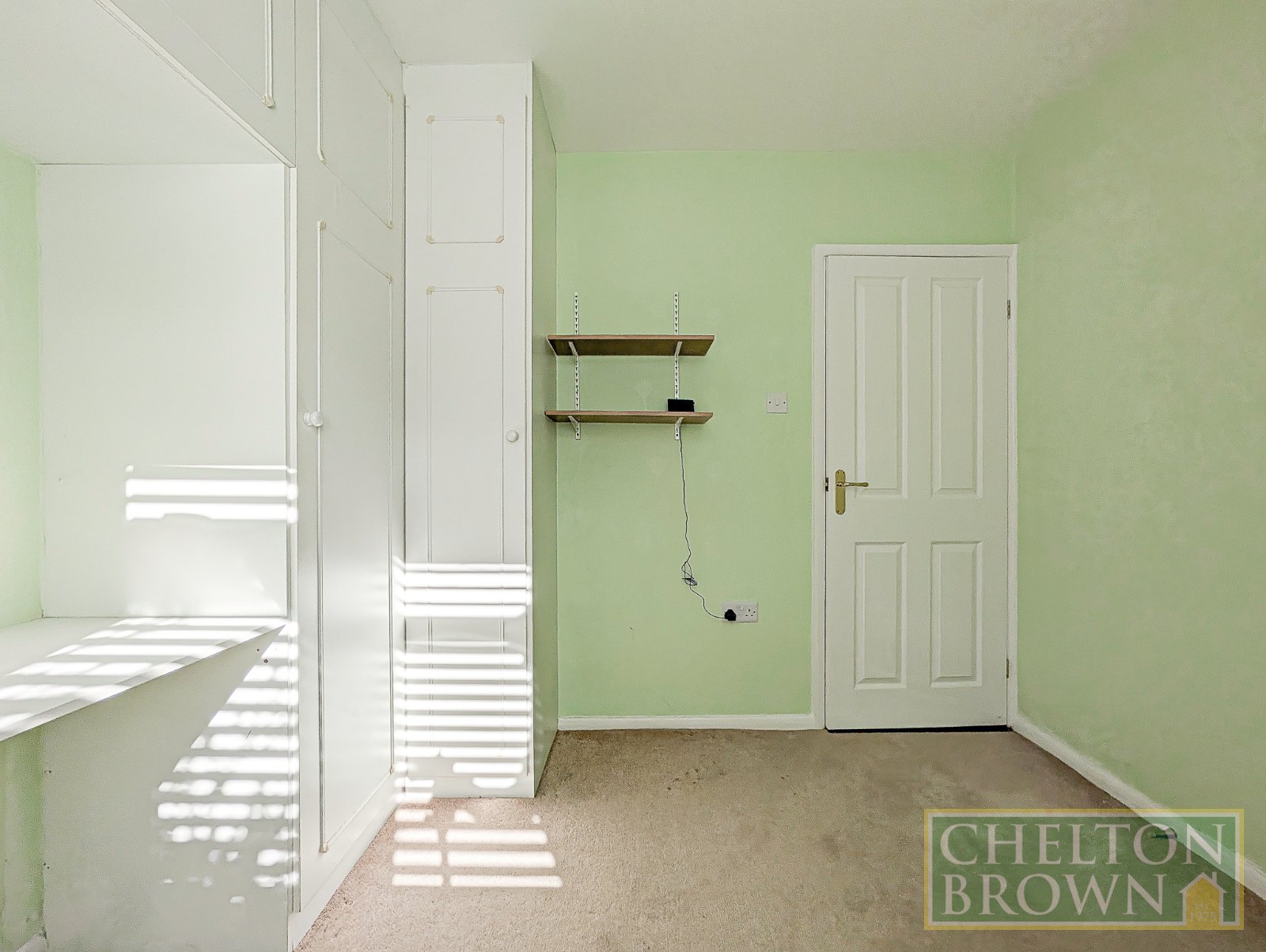 The third bedroom, a generous single, also includes fitted storage and enjoys views over the front garden.