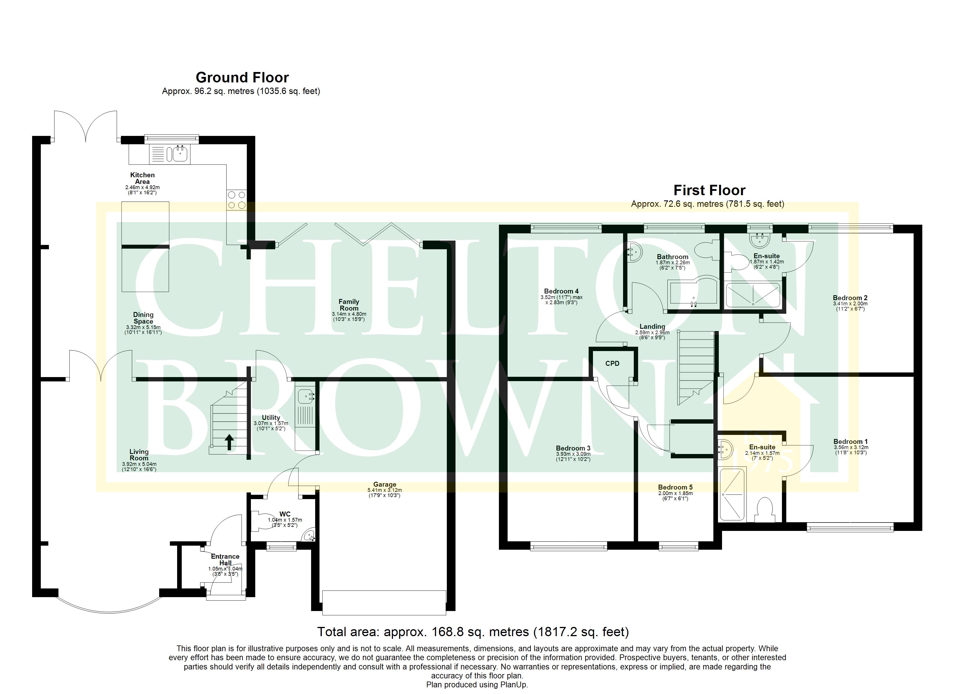 Upstairs, the home continues to impress with five generously sized bedrooms and three modern bathrooms. Bedrooms one and two are large doubles, each benefiting from luxurious en-suite shower rooms finished to an exceptional standard with premium fixtures and fittings. Bedrooms three and four are also spacious double rooms, while bedroom five makes an ideal single bedroom, nursery, or study. The family bathroom is bright and contemporary, complete with attractive tiling and a shower over the bath.