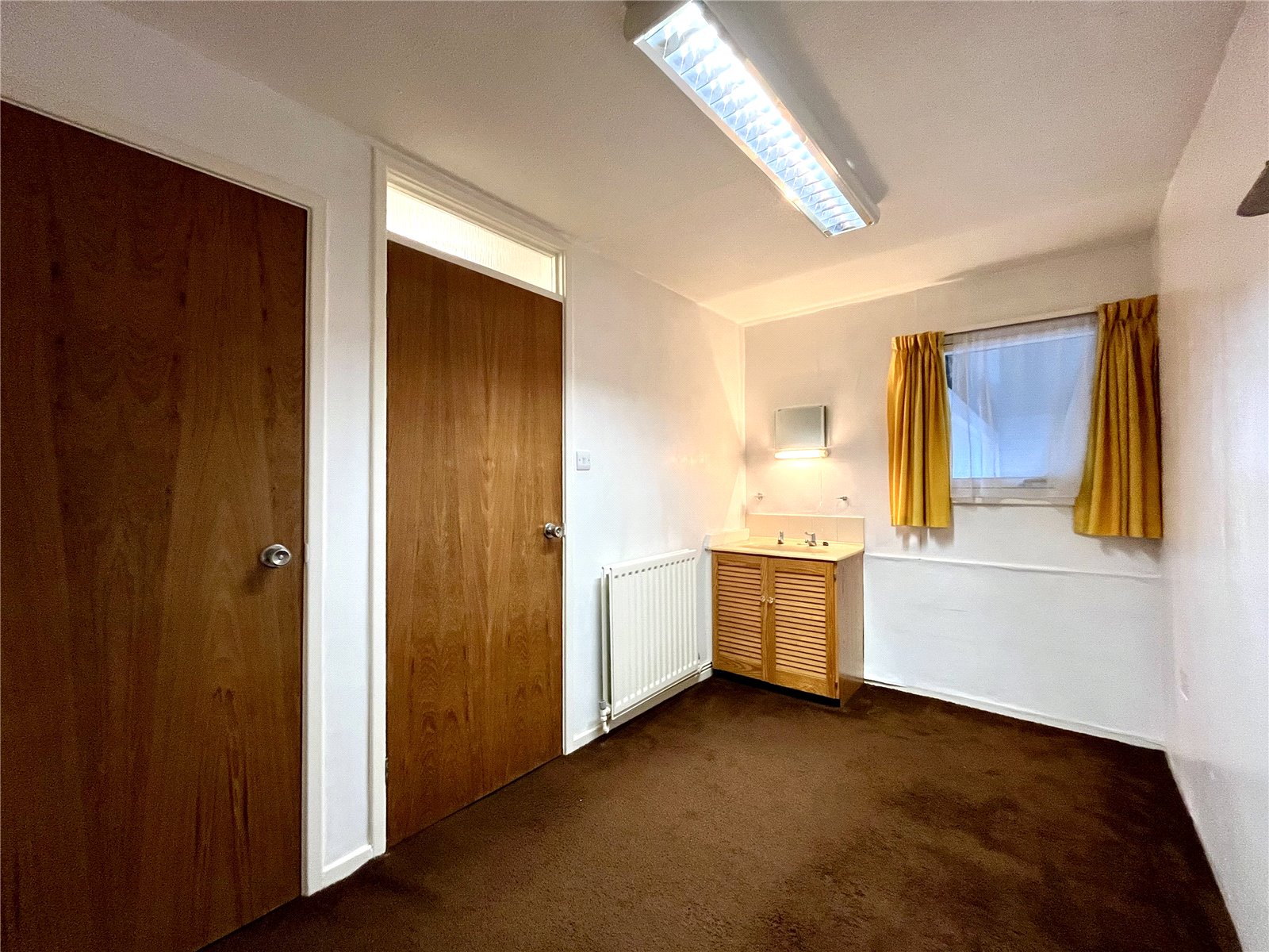 With sink unit and cupboard under. Built-in wardrobe. This room is suitable for a variety of different uses.