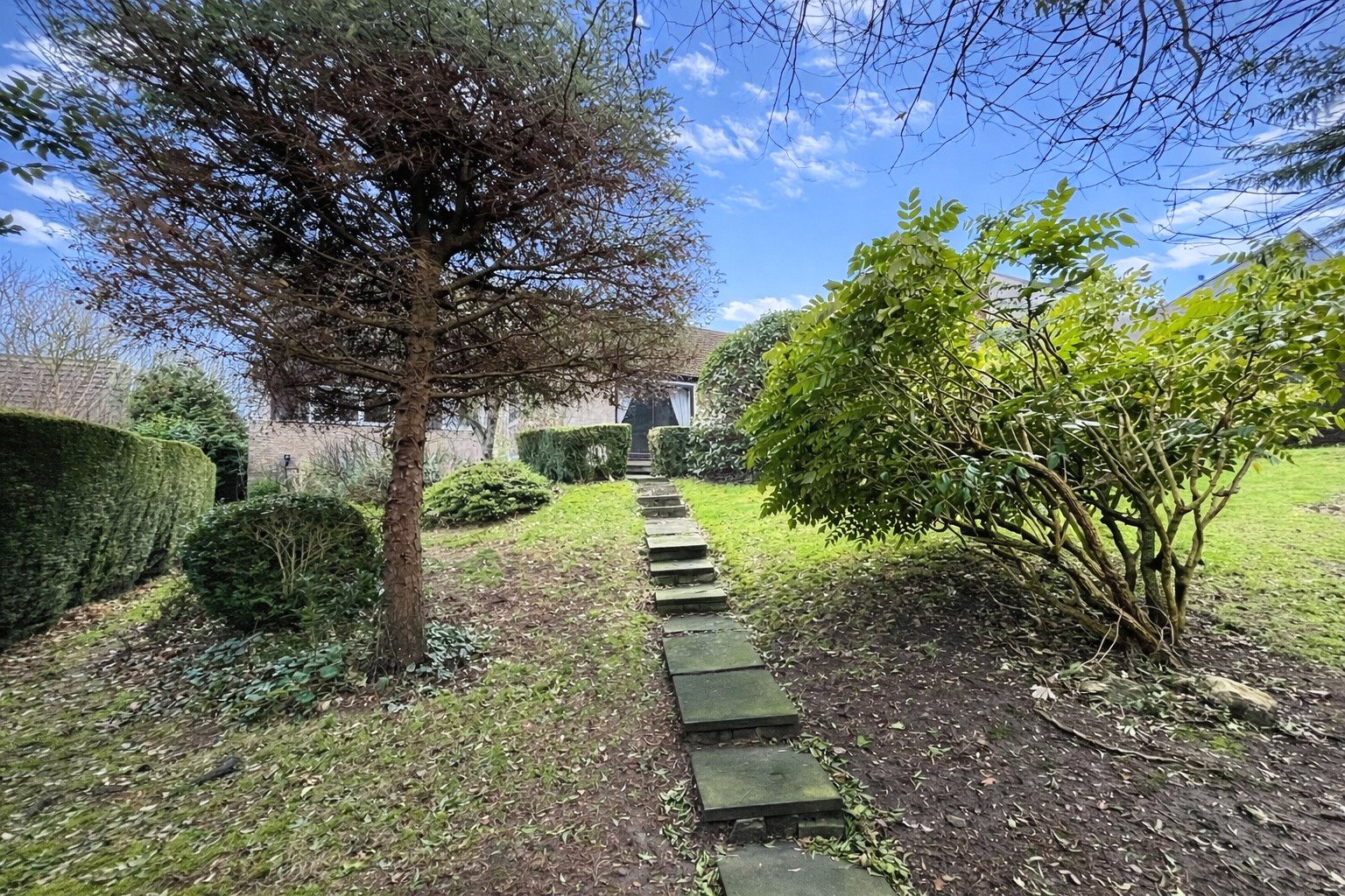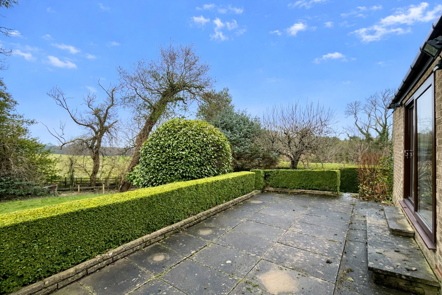 Large and mature gardens to the front and rear, the latter being well-screened by trees, bushes and shrubs, offering a good degree of privacy with various lawned areas, and a large flagged patio bordered by box hedging.