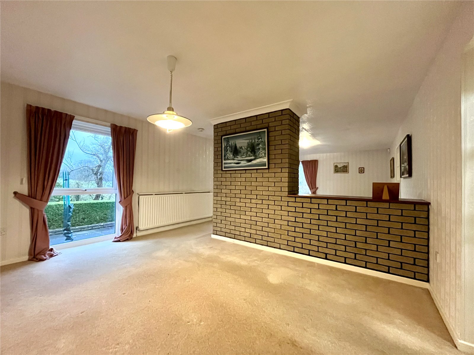 A light and airy room from full length windows including a large sliding patio door to gardens. Feature brick fireplace incorporating a fitted gas fire.