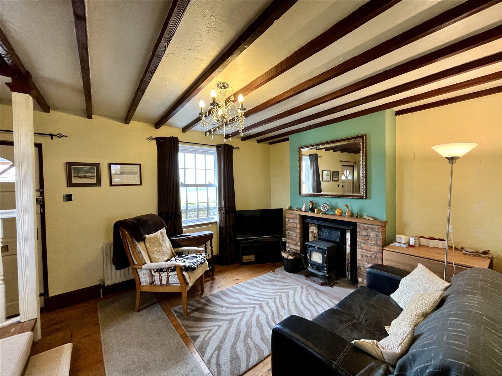 Fireplace incorporating a multi-fuel burning stove. Polished timber flooring and exposed ceiling beams. Staircase to first floor with storage cupboard under.