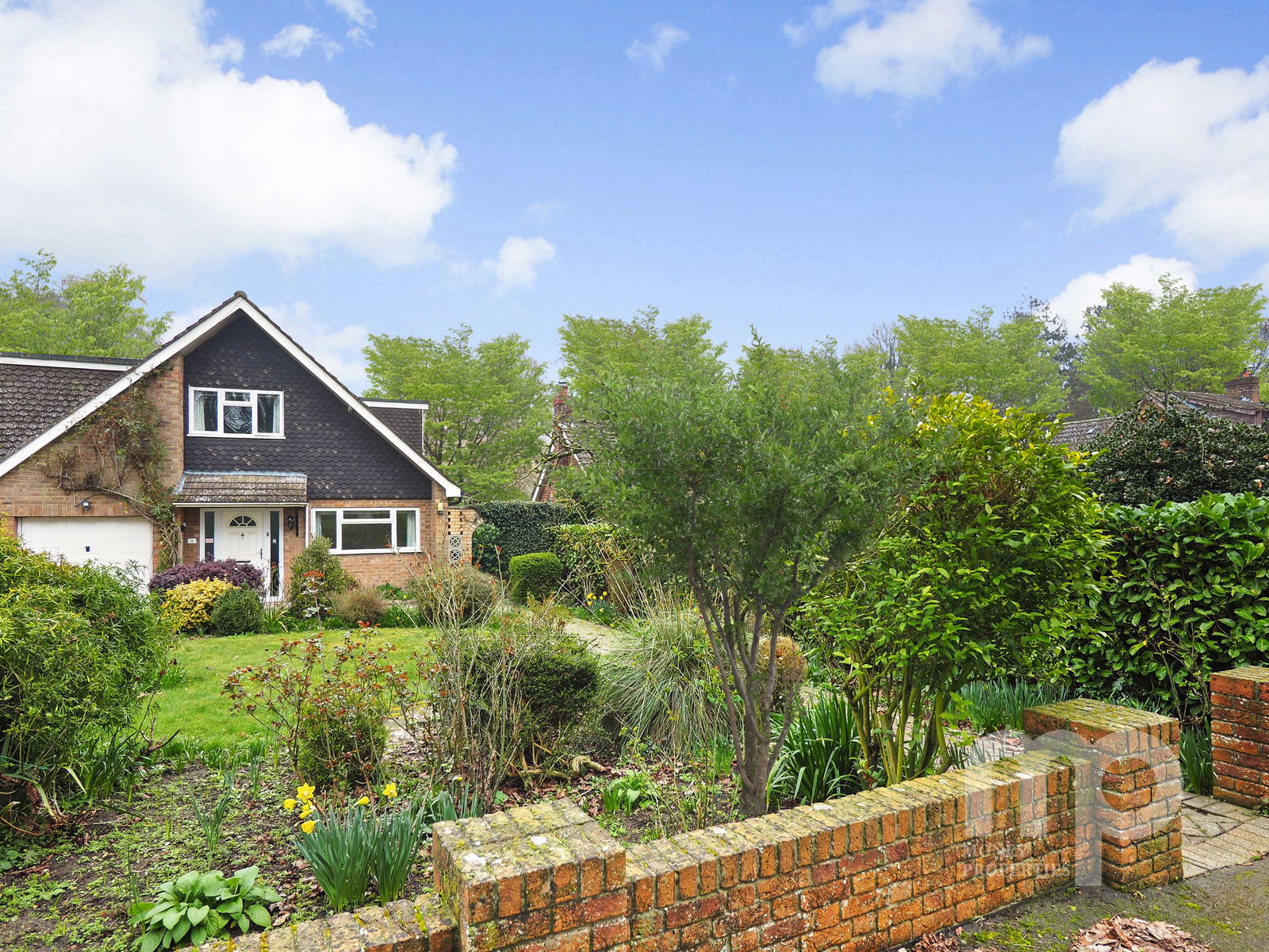 - 55ft front garden with mature trees and parking for 3–4 vehicles and single garage
