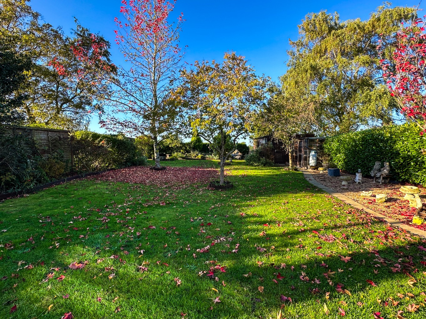 - Well stocked 80ft Rear Garden with 17ft Workshop & Separate Greenhouse