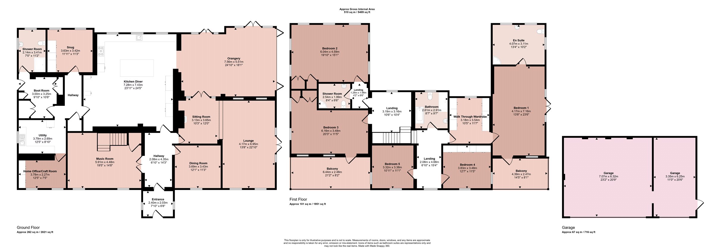 Kinross is a rare offering to the open market, an iconic house on the edge of the Vale of Belvoir offering panoramic views across Nottinghamshire's finest countryside. The main home has been thoughtfully and substantially extended and boasts six reception rooms on the ground floor, in addition to the sizeable living/dining kitchen. Completing the ground floor is a utility room, boot room and ground floor shower room/WC. Upstairs an oak and glass staircase leads to two upper landings where there are five impressive bedrooms with the principal suite being a real feature consisting of large bedroom, Juliette balcony and external balcony as well as a luxury en-suite. There is a second guest bedroom with an en-suite. Bedroom three enjoys an external first floor balcony and there is a refitted luxury bathroom. Outside the property has a magnificent plot with a large gravelled driveway and triple detached garage. Formal gardens wraparound the property with an orchard and vegetable garden and the plot extends to 5.5 acres with a wrapround paddock with separate gated access. Within the paddock is a greenhouse and further garage. The property has high quality fixtures and fittings throughout and offers ready to move into accommodation with no chain. Early viewing is strongly advised to appreciate the scale and setting of this magnificent home and its superb views.
