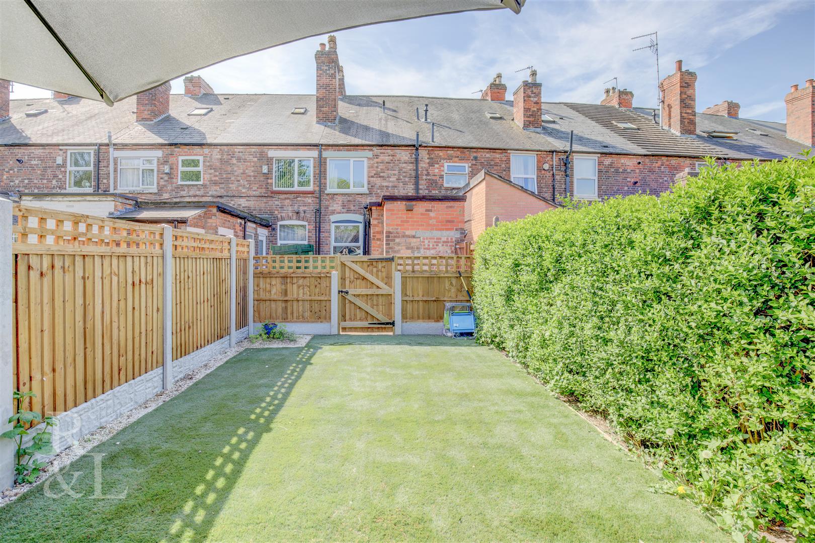 There is secure gated access down the side of the property with a courtyard straight off the kitchen and a separate gated low maintenance garden that features artificial grass and a decking.